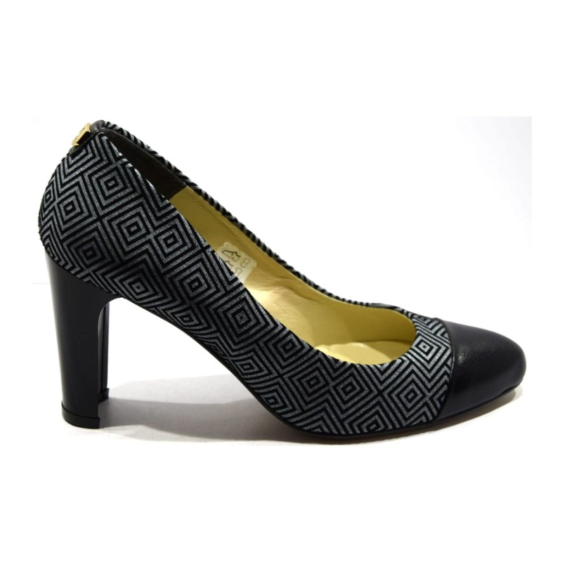 Damskie czółenka na obcasie z naszej kolekcji to połączenie stylu i elegancji. Ich wyrafinowany design, zgeometryzowany wzór na skórze oraz czarny nosek nadają im niepowtarzalny charakter. Idealnie sprawdzą się zarówno na co dzień, do pracy czy na spotkanie ze znajomymi, jak i na wyjątkowe okazje, jak wesele czy przyjęcie.