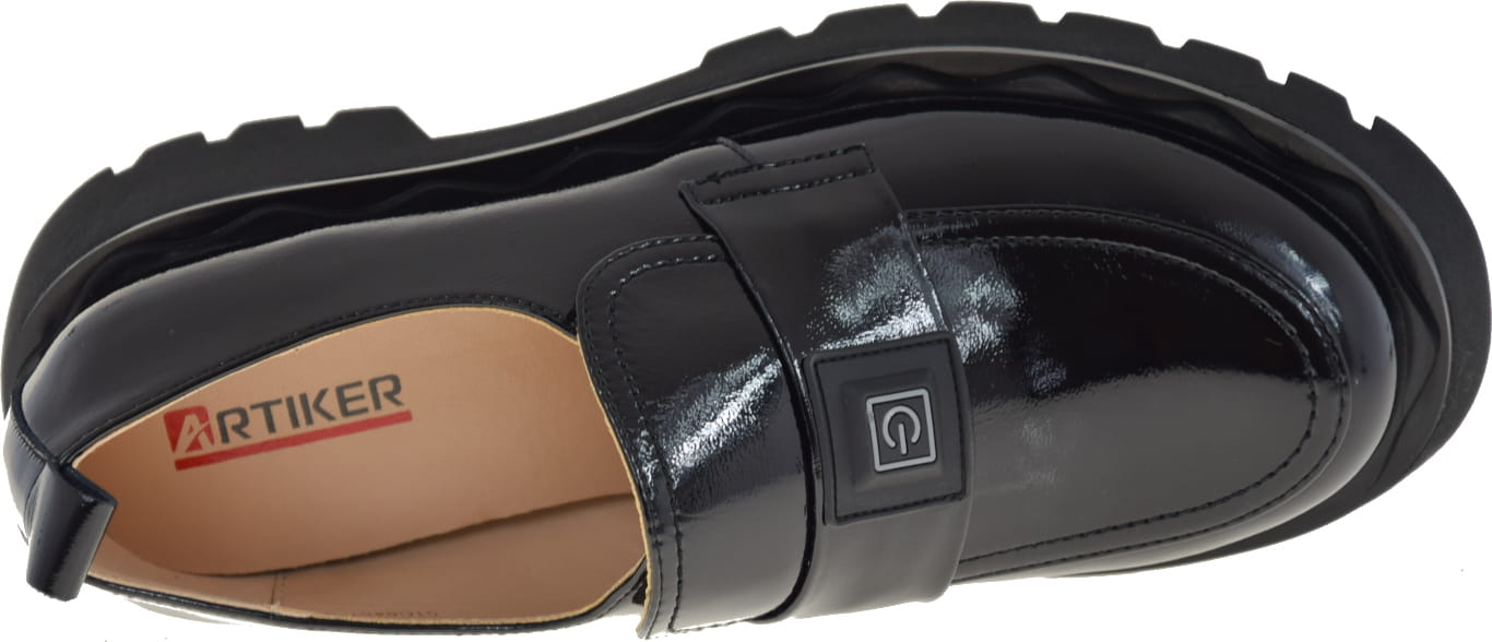 ARTIKER CZARNE LAKIEROWANE MOKASYNY NA GRUBEJ PODESZWIE ELEGANCKIE PÓŁBUTY MODNY DESIGN WYGODA I STYL 51C0457