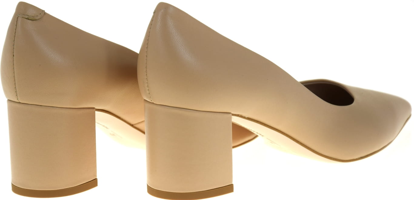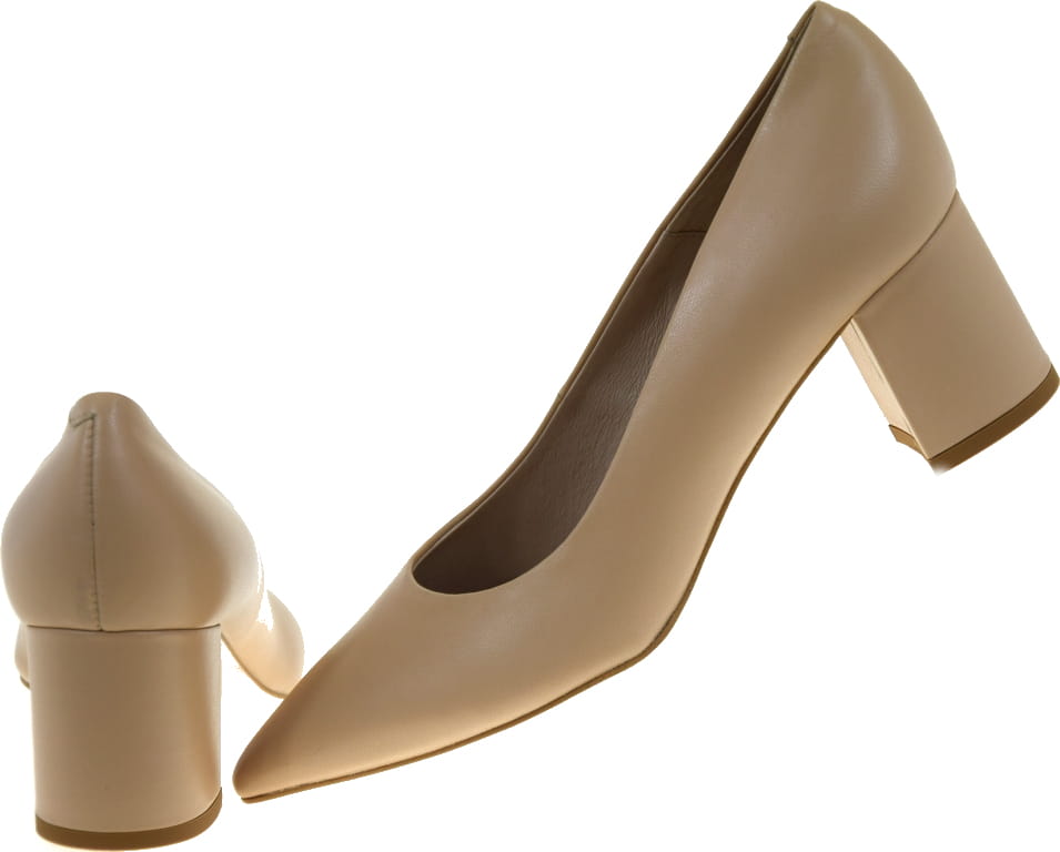 Prezentowane czółenka na obcasie wyróżniają się ponadczasową estetyką. Wykonane z wysokiej jakości licowej skóry naturalnej, zapewniają zarówno elegancję, jak i komfort noszenia na co dzień czy specjalne okazje. Neutralna paleta barw pozwala na łatwe dopasowanie do każdego stroju, a stabilny i komfortowy słupek o wysokości 6,5 cm dodaje pewności kroku bez obciążania stóp.