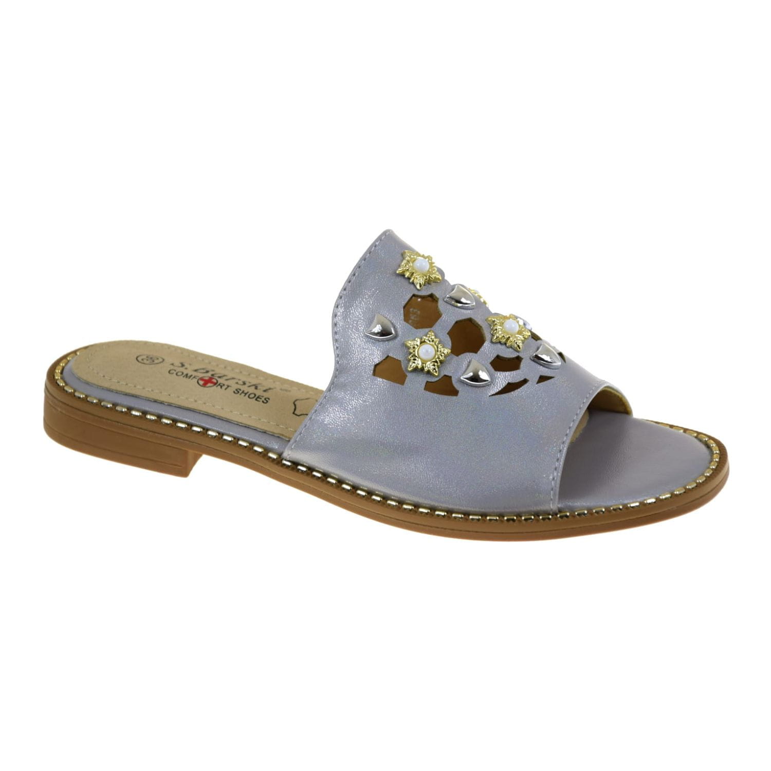 KLAPKI DAMSKIE S.BARSKI KV27-063 ELEGANCKIE PERŁOWE COMFORT