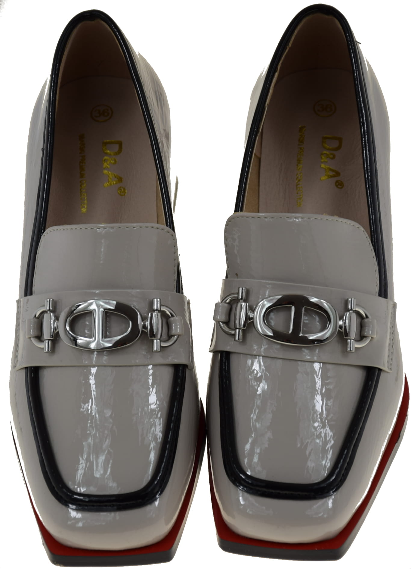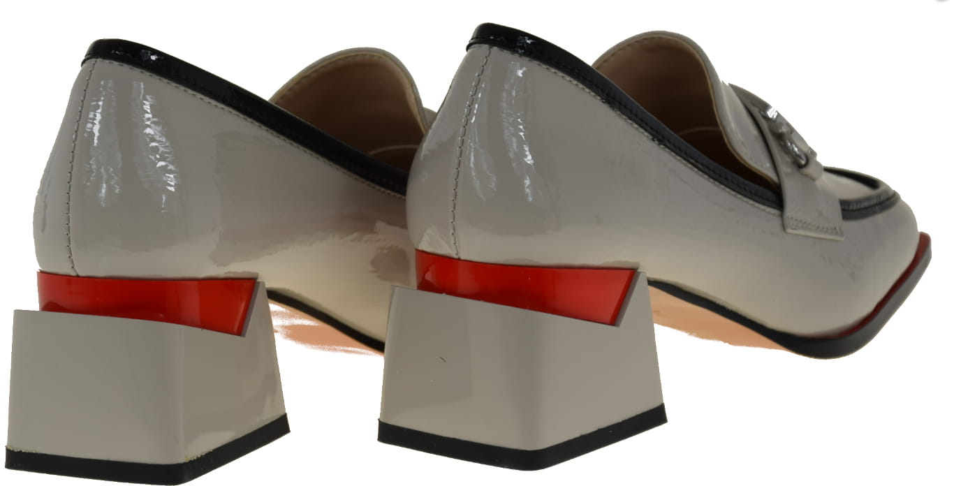 Designerska srebrna klamra na wierzchu dodaje butom nowoczesnego charakteru, a kontrastujące barwy - szary połysk i czerwony akcent na obcasie - sprawiają, że są one wyjątkowe i rozpoznawalne. Tęgość G zapewnia odpowiednie dopasowanie do stopy, a codzienne oraz eleganckie przeznaczenie czyni je uniwersalnym elementem garderoby.