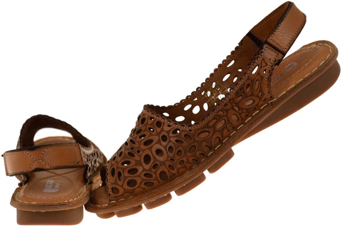 Zanurz się w świecie mody letniej z najnowszymi trendami VACARRO. Te efektowne i modne sandały z nowej kolekcji są idealne dla każdej kobiety, która ceni sobie unikatowe wzory i luksusowy komfort. Ażurowa cholewka, wykonana z skóry naturalnej licowej w kolorze brązowym, w odcieniu tabaki, jest nie tylko przyjemna w dotyku, ale także niezwykle lekka i przewiewna.