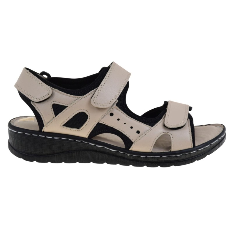 Beżowe wygodne sandały damskie skórzane na rzepy na lato codzienne Artiker 52C0294