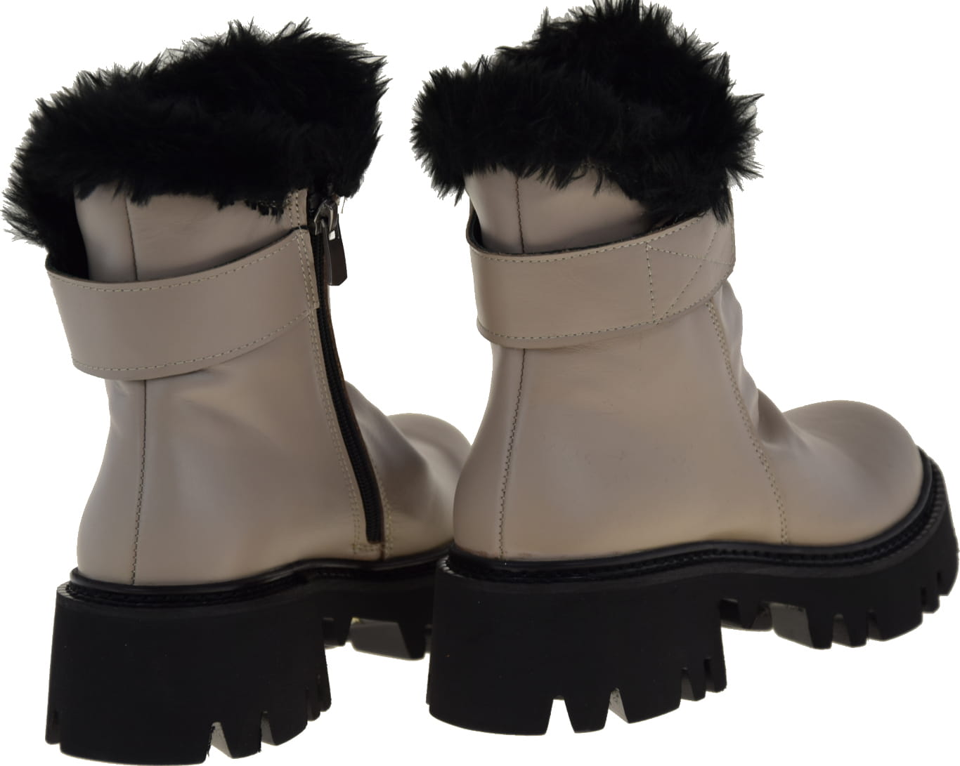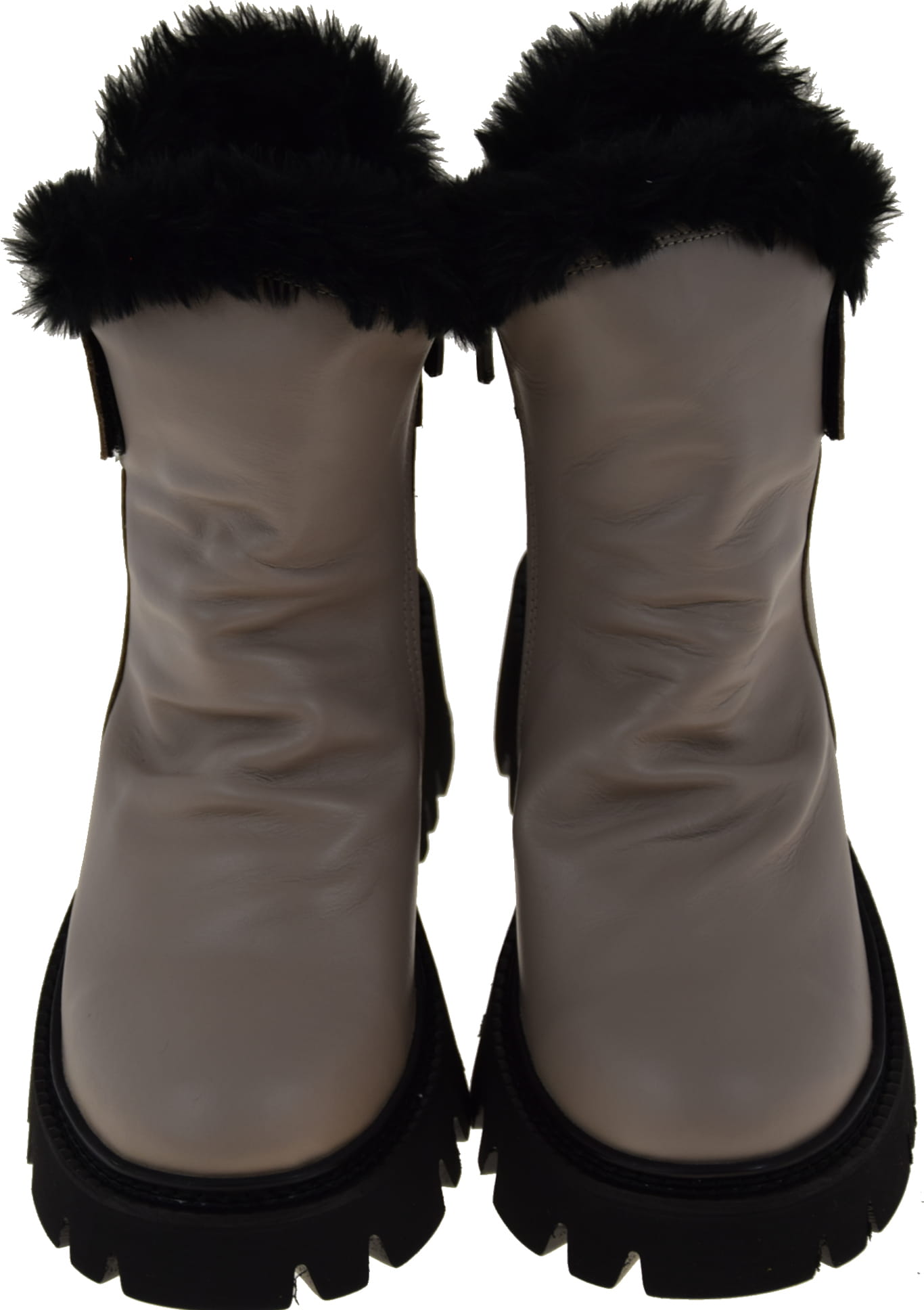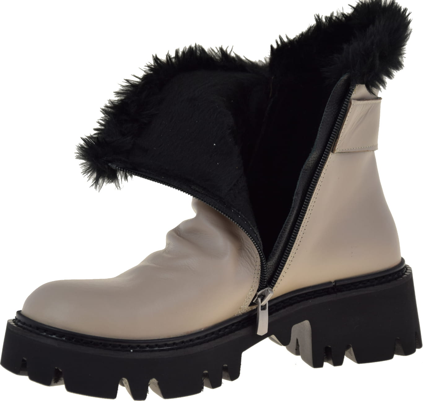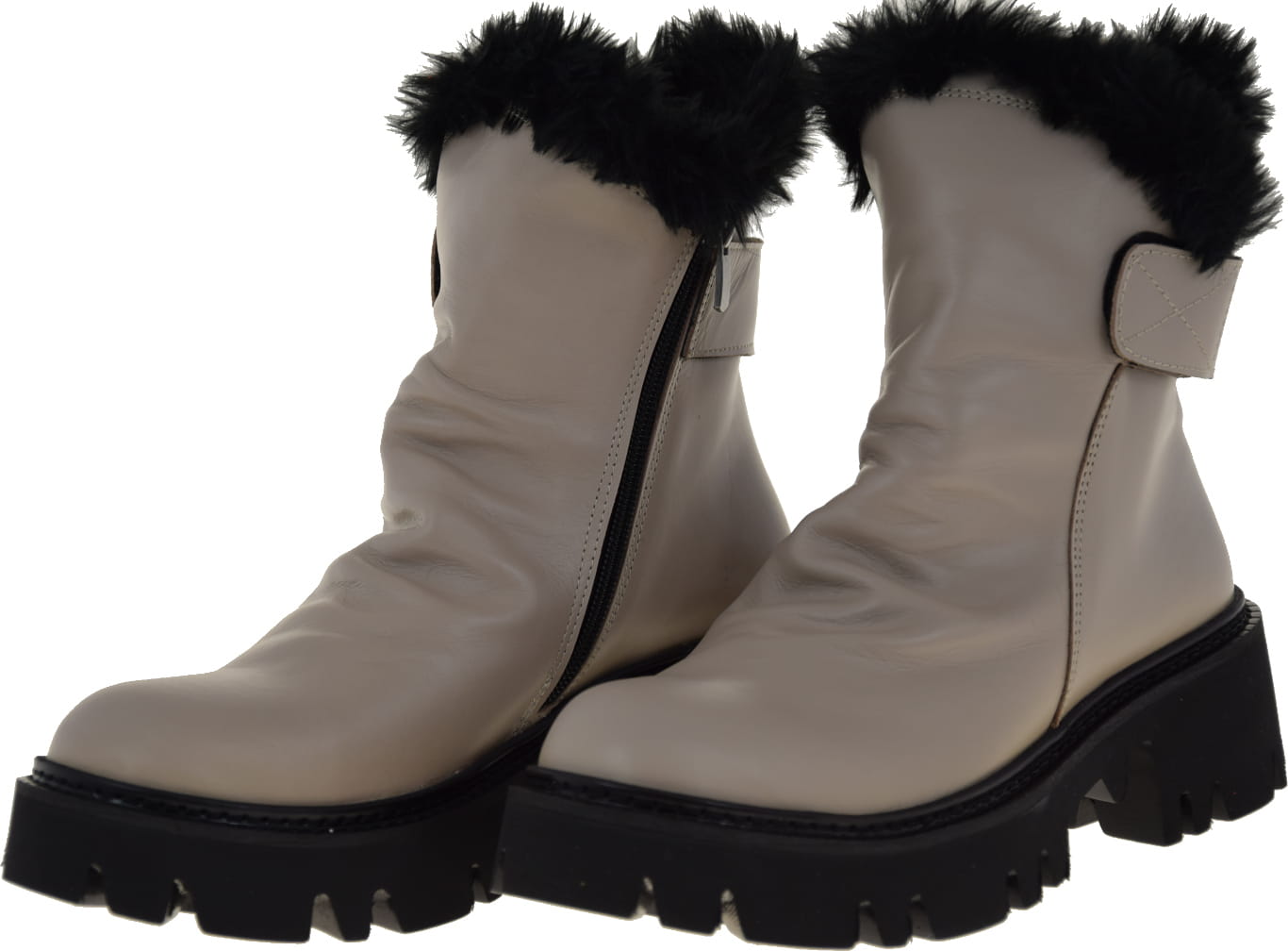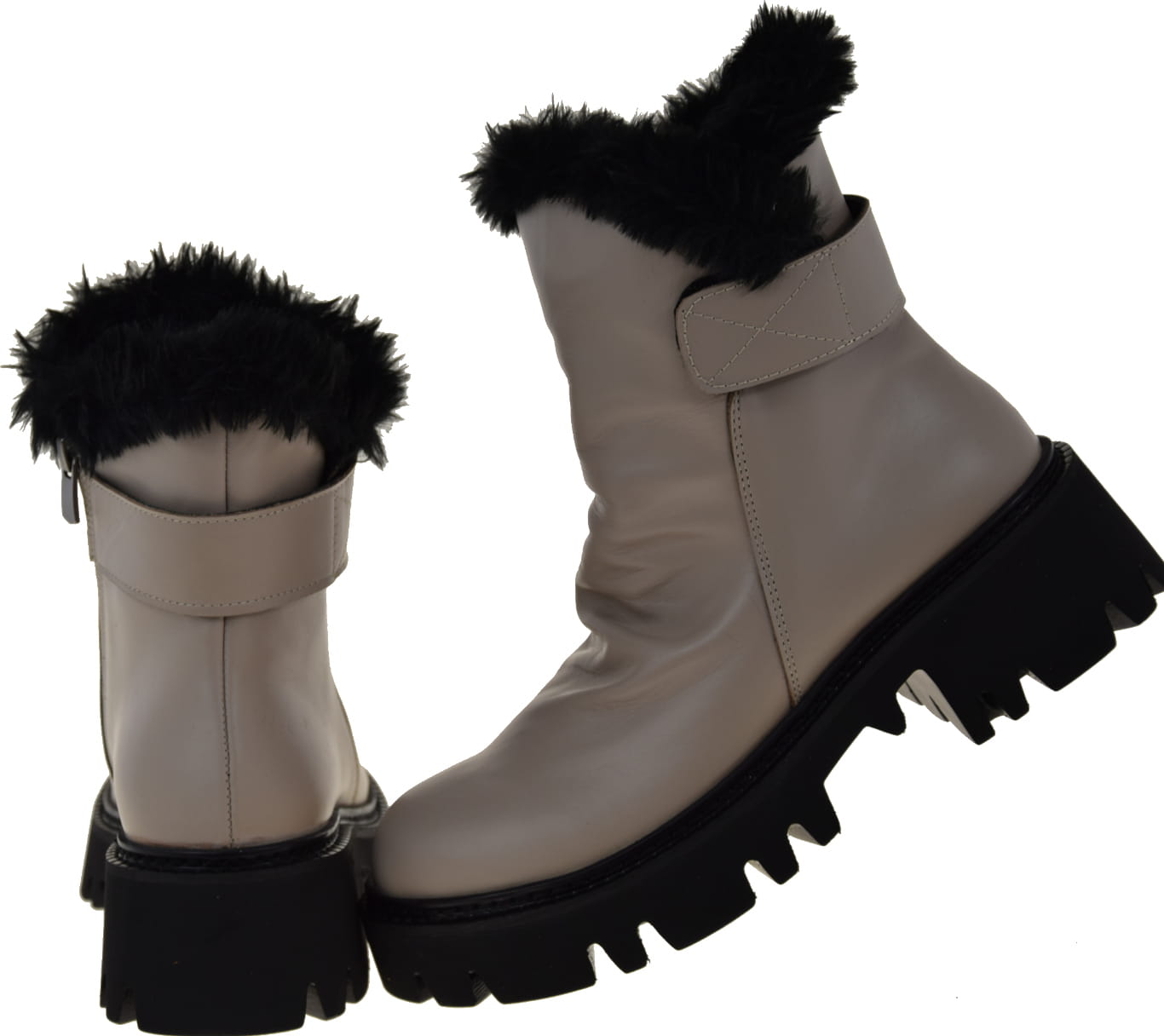 Szukasz kozaków, które będą nie tylko modnym dodatkiem do Twojego stylu, ale także praktycznym wyborem na zimę? Nasze kozaki damskie z naturalnej licowej beżowej skóry to strzał w dziesiątkę! Ozdobione czarnym futerkiem, nadają szyku i klasy każdej stylizacji. Zapinane na suwak, z charakterystycznymi pomarszczeniami skóry na podbiciu, wyróżniają się oryginalnym designem.