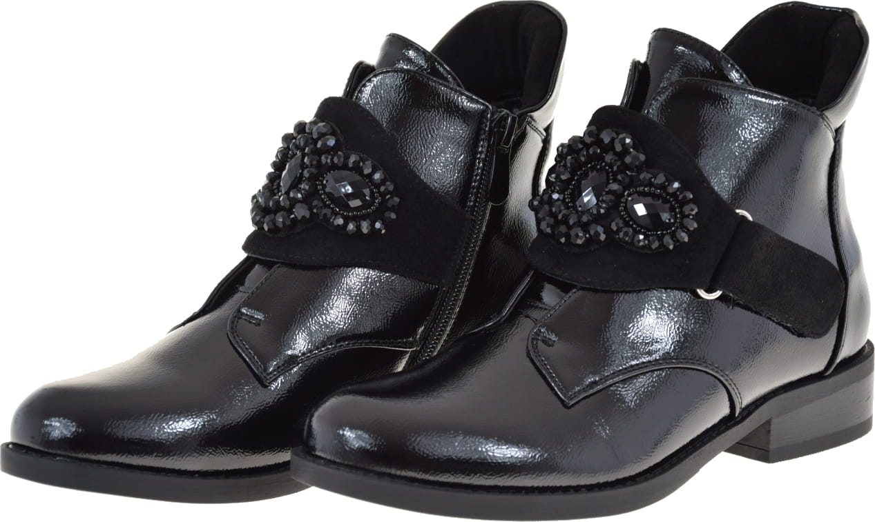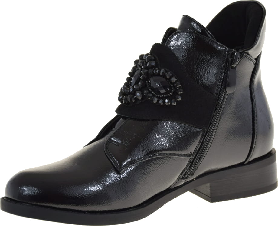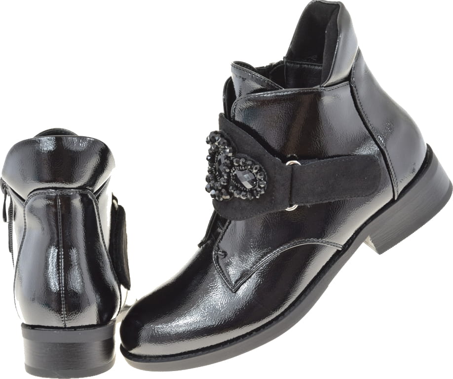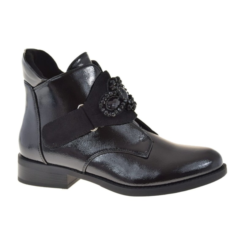 Eleganckie Botki Damskie z Lakierowanej Skóry Ekologicznej