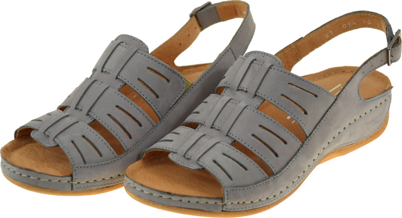 SANDAŁY DAMSKIE POLLONUS 5-1094 SKÓRA SZARA KOTURN LETNIE