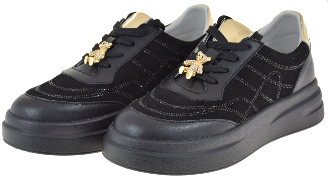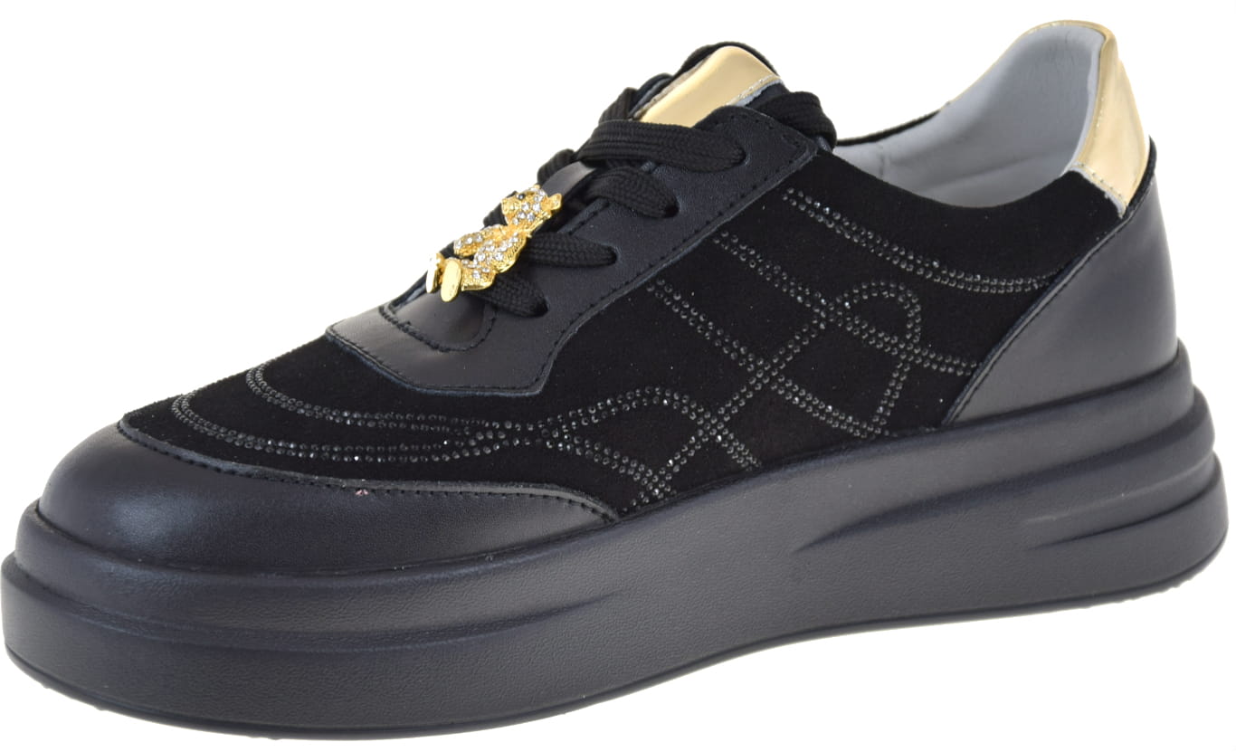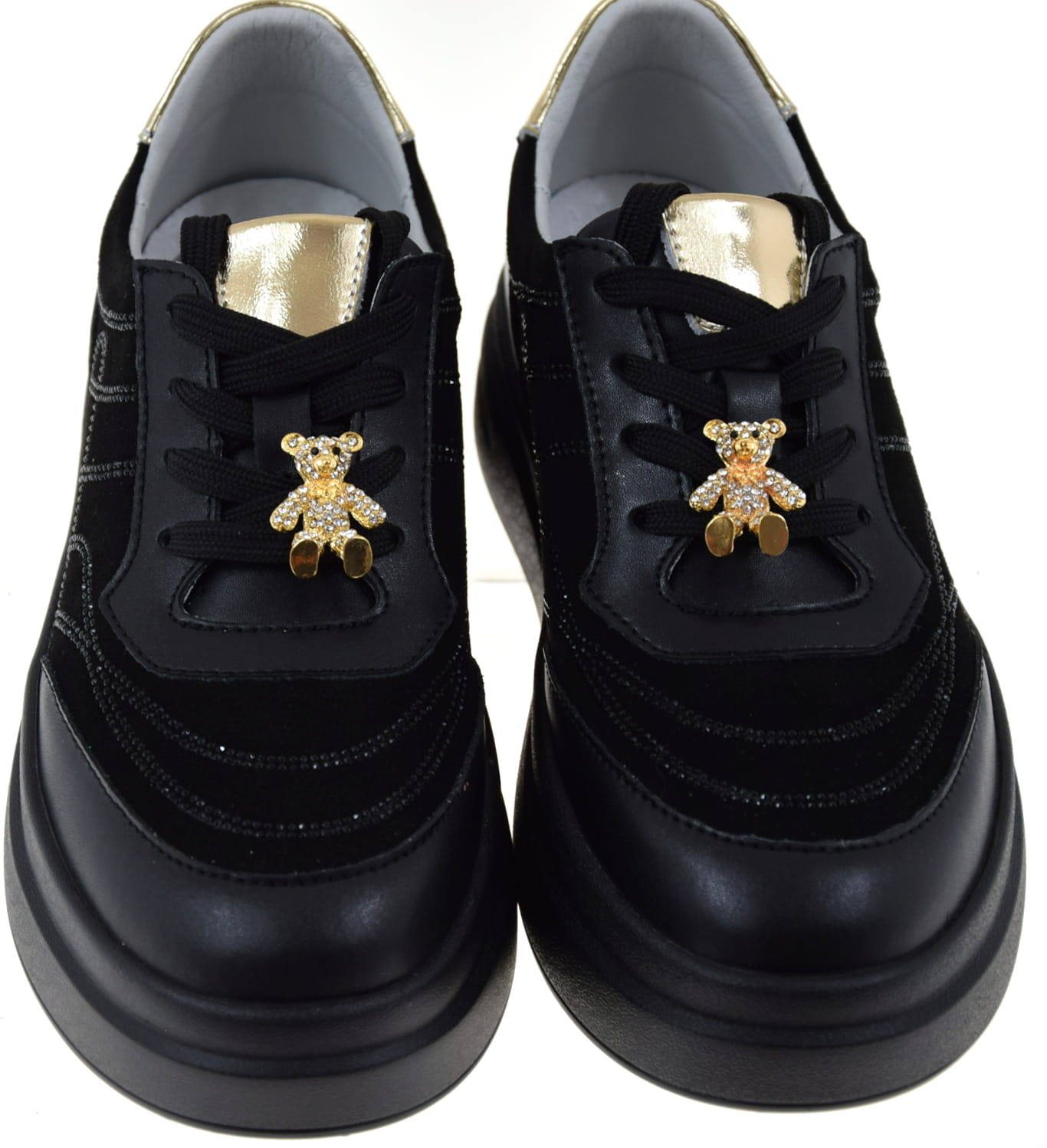 Półbuty Artiker 54C1874 wykonane są z wysokiej jakości skóry, co gwarantuje ich trwałość oraz komfort noszenia. Charakterystyczne zdobienia w postaci delikatnych cyrkonii i złotych akcentów na tylnej części buta oraz języku, dodają im subtelnego blasku i ekskluzywnego wyglądu. Złoty element na sznurówkach stanowi wyjątkową ozdobę, która przyciąga wzrok, czyniąc obuwie wyjątkowym dodatkiem do każdej garderoby.