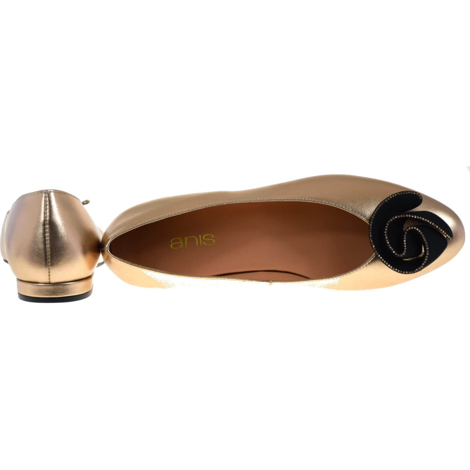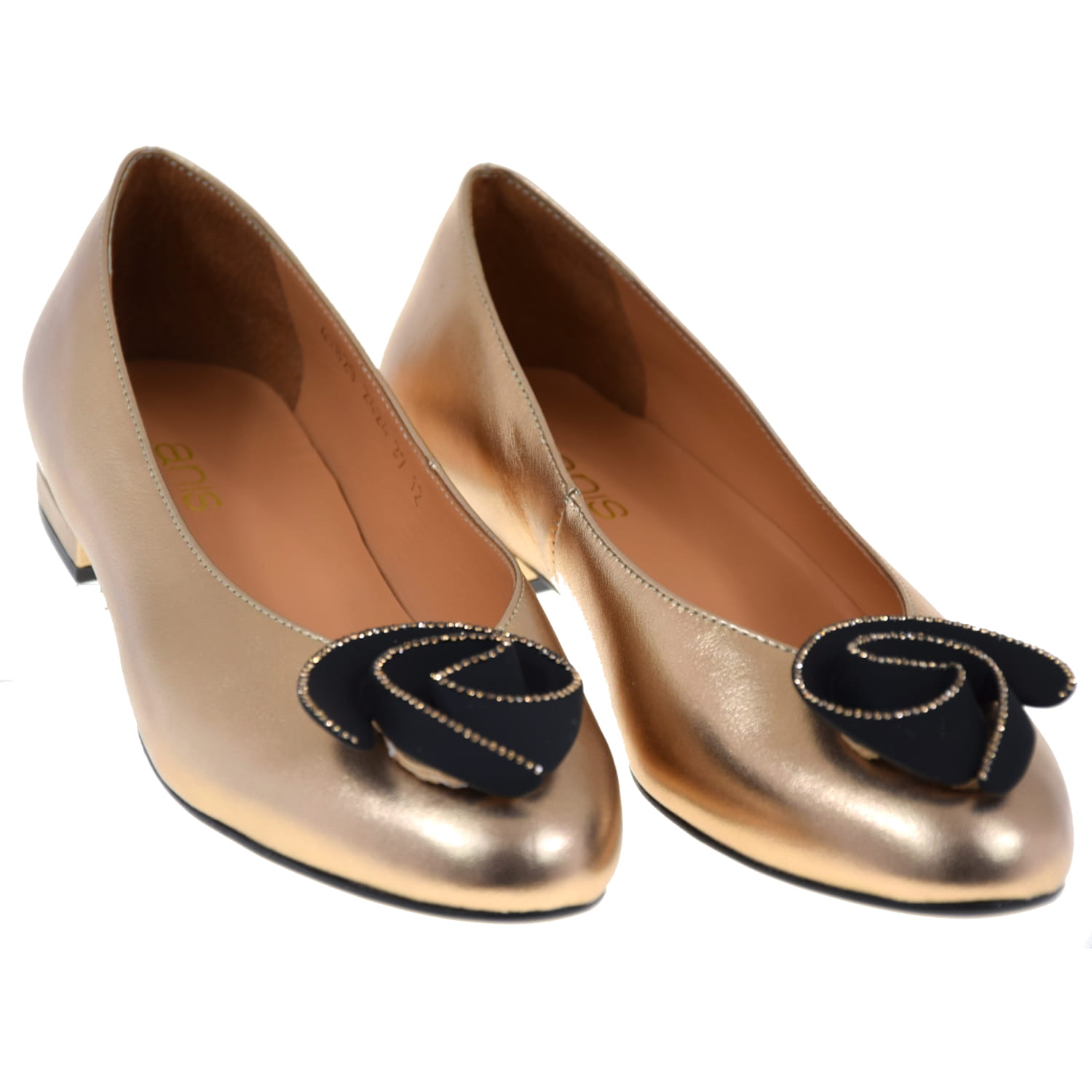 Stylowe miedziane baleriny damskie Złote baleriny damskie eleganckie Komfortowe baleriny z naturalnej skóry Miedziane baleriny na niskim obcasie Eleganckie skórzane baleriny ANIS 2424 Baleriny damskie z ozdobą kwiatową Modne baleriny na co dzień Skórzane baleriny z cyrkoniami Luksusowe baleriny damskie ANIS 2424 Baleriny na wiosnę/lato