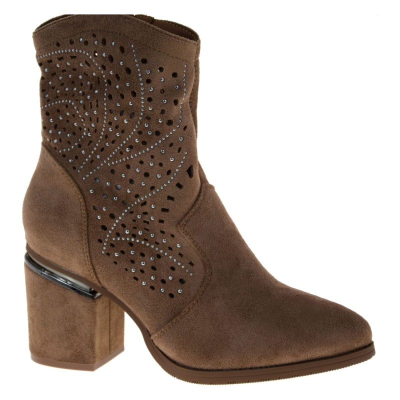 Botki damskie S.BARSKI HY42-029 to idealny wybór dla kobiet ceniących sobie modne botki i wysoką jakość. Wykonane z ekologicznej skóry zamszowej w pięknym kolorze coffee, te damskie botki charakteryzują się eleganckim migdałowym noskiem oraz ażurową cholewką ozdobioną dżetami. To połączenie klasyki z nowoczesnym stylem, które sprawi, że każda kobieta poczuje się wyjątkowo.