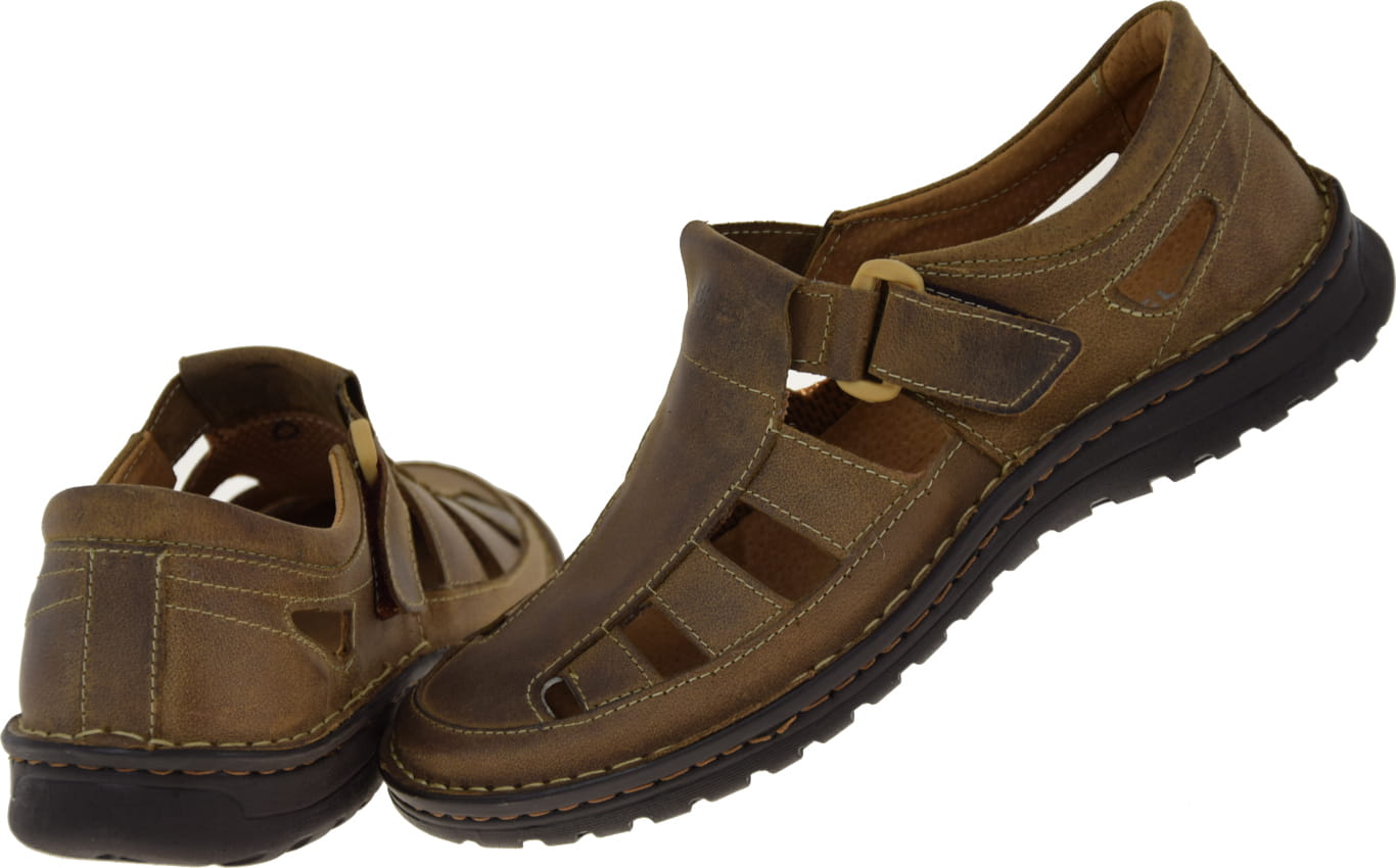 MĘSKIE PÓŁBUTY AŻUROWE SANDAŁY z NATURALNEJ SKÓRY IDEALNE NA LATO MAX KOMFORT ENZO 228 85