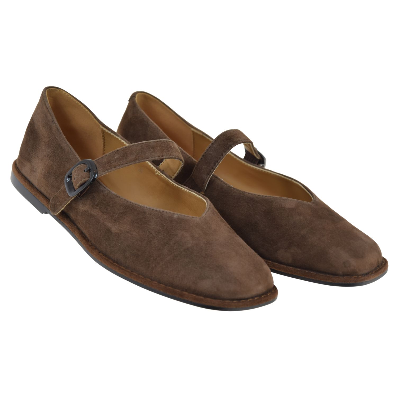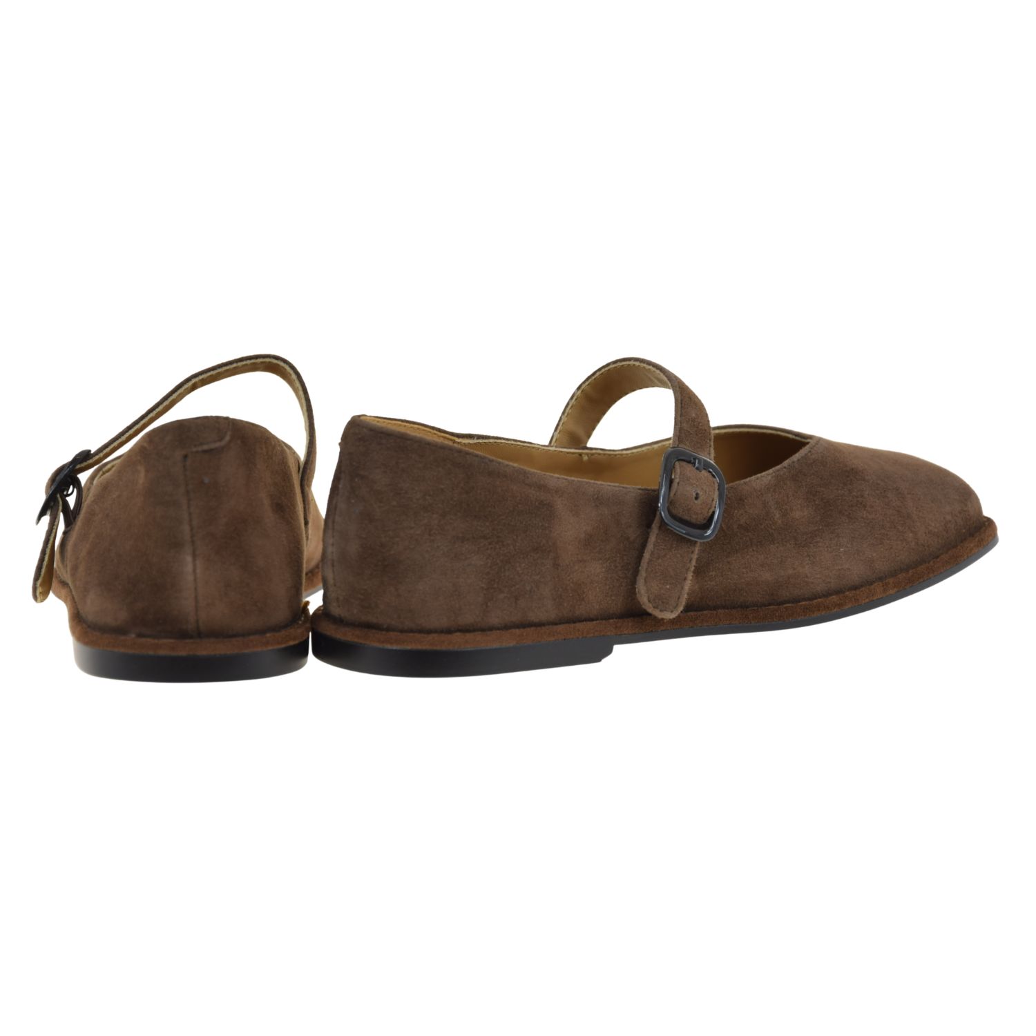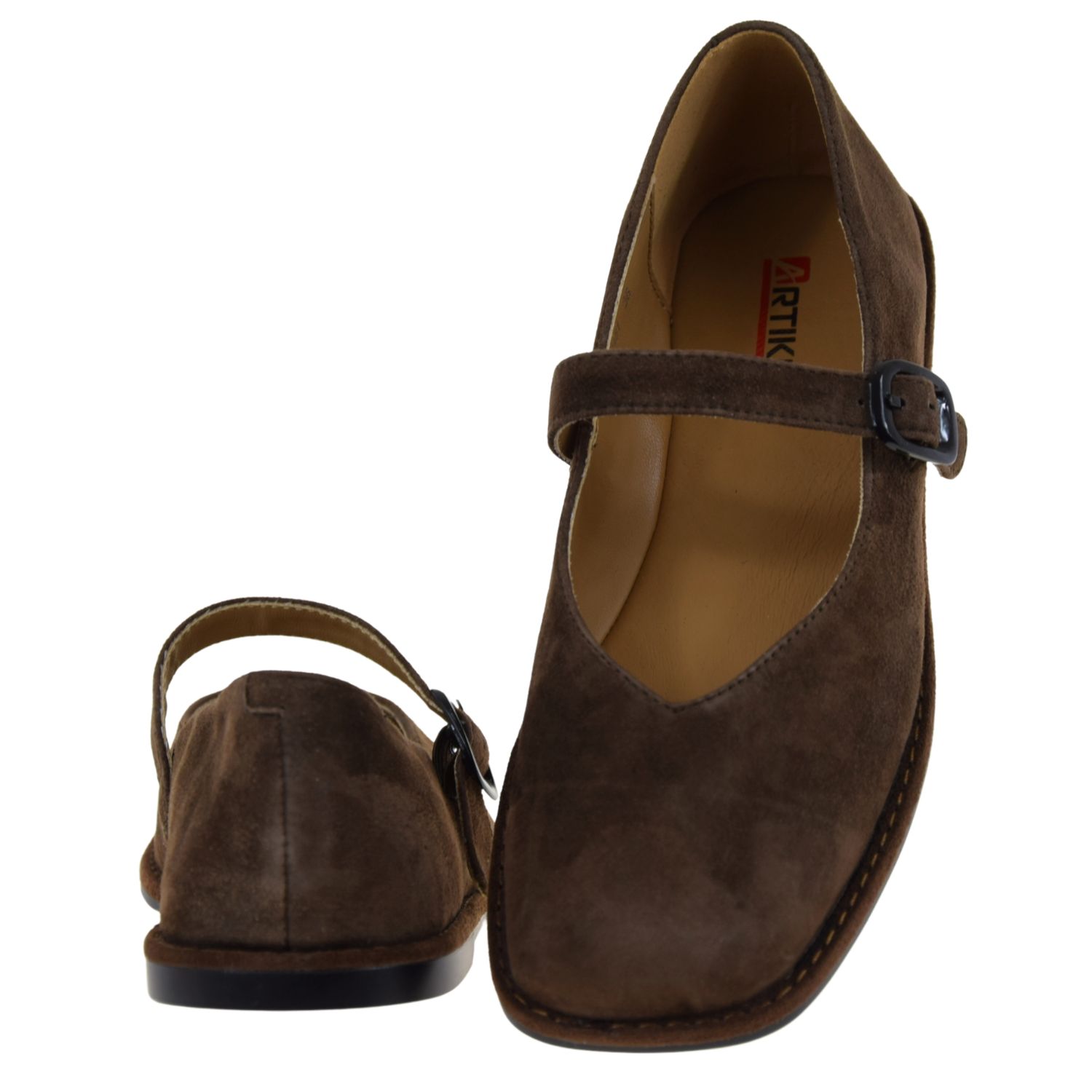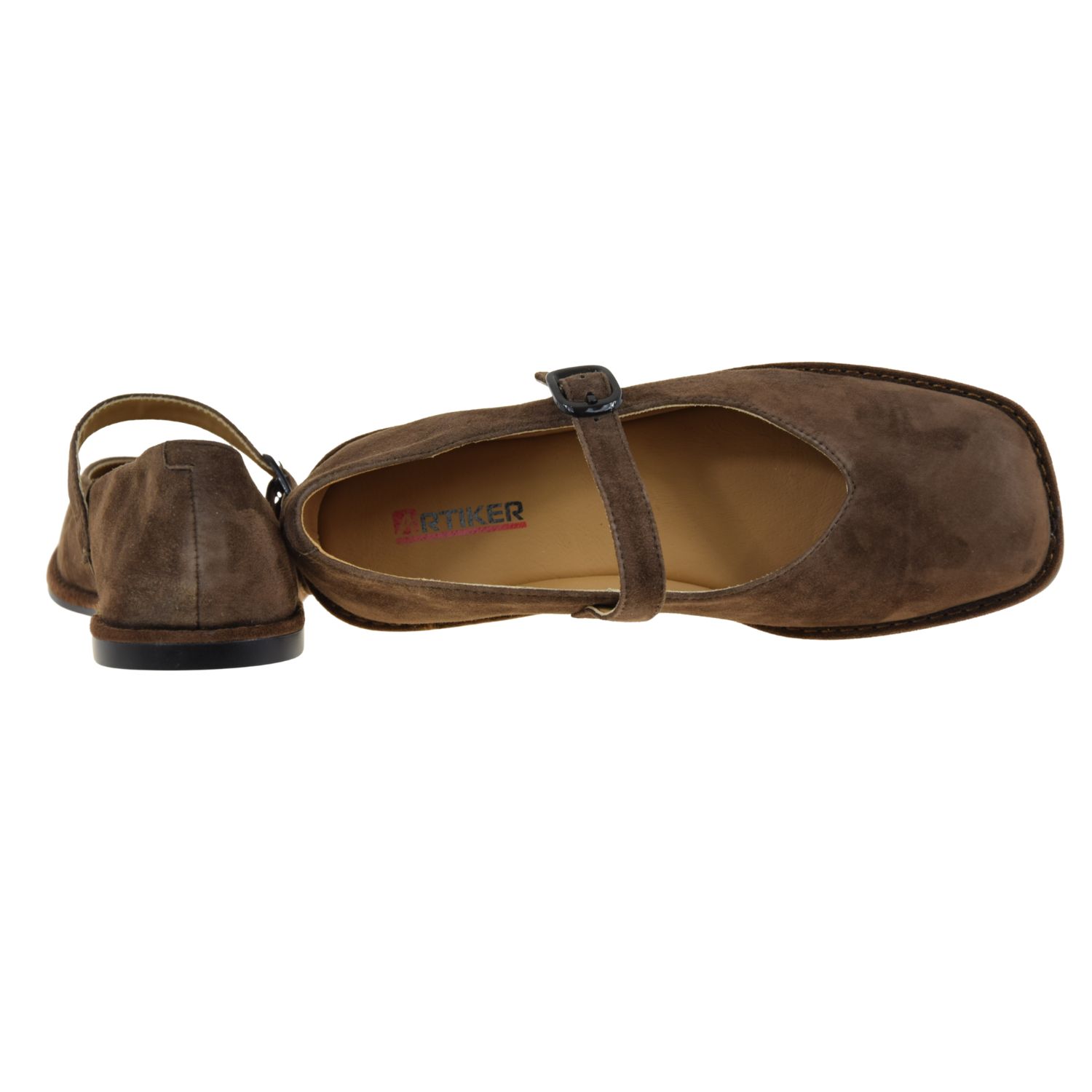 Eleganckie baleriny damskie skórzane ARTIKER 58C1451 brązowe zamszowe – baleriny na pasek z klamrą