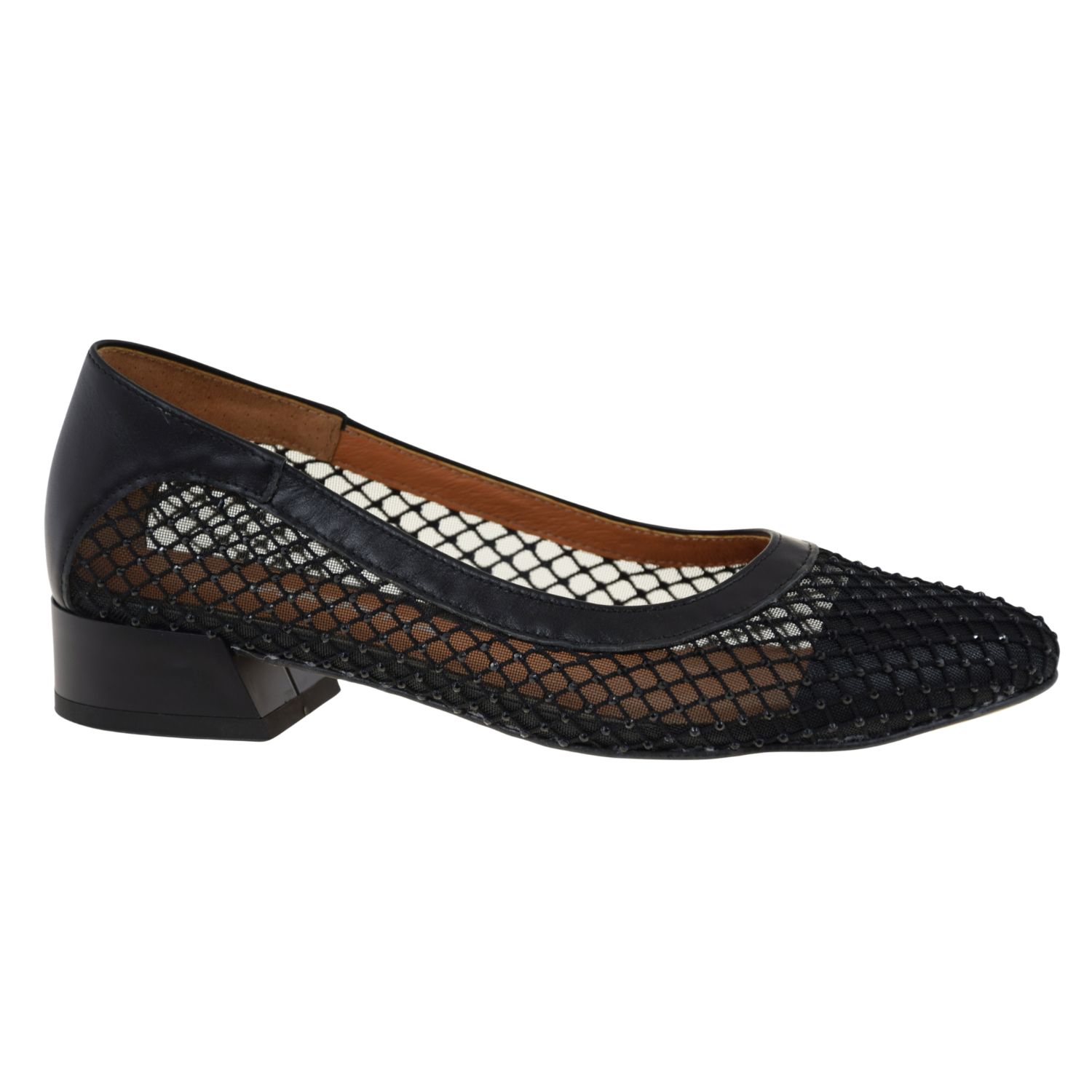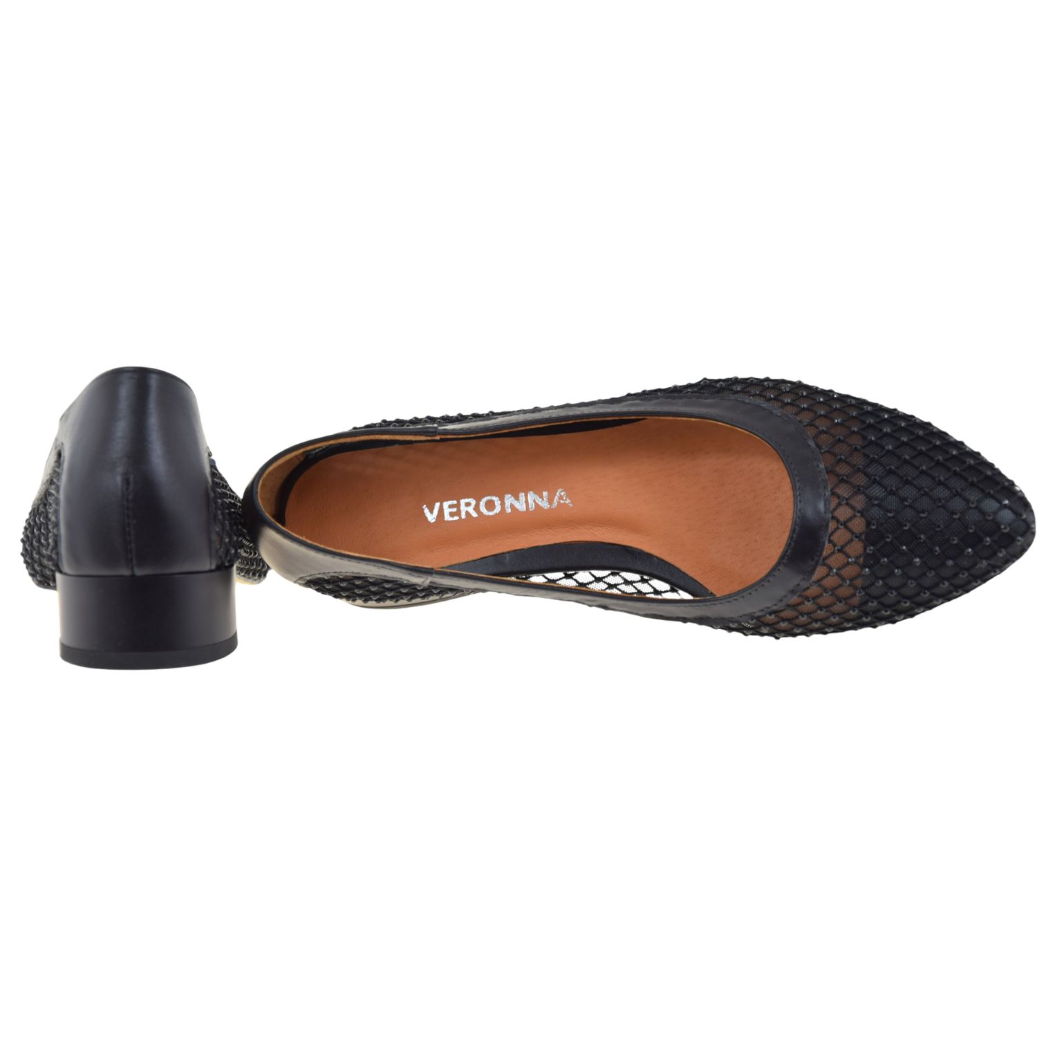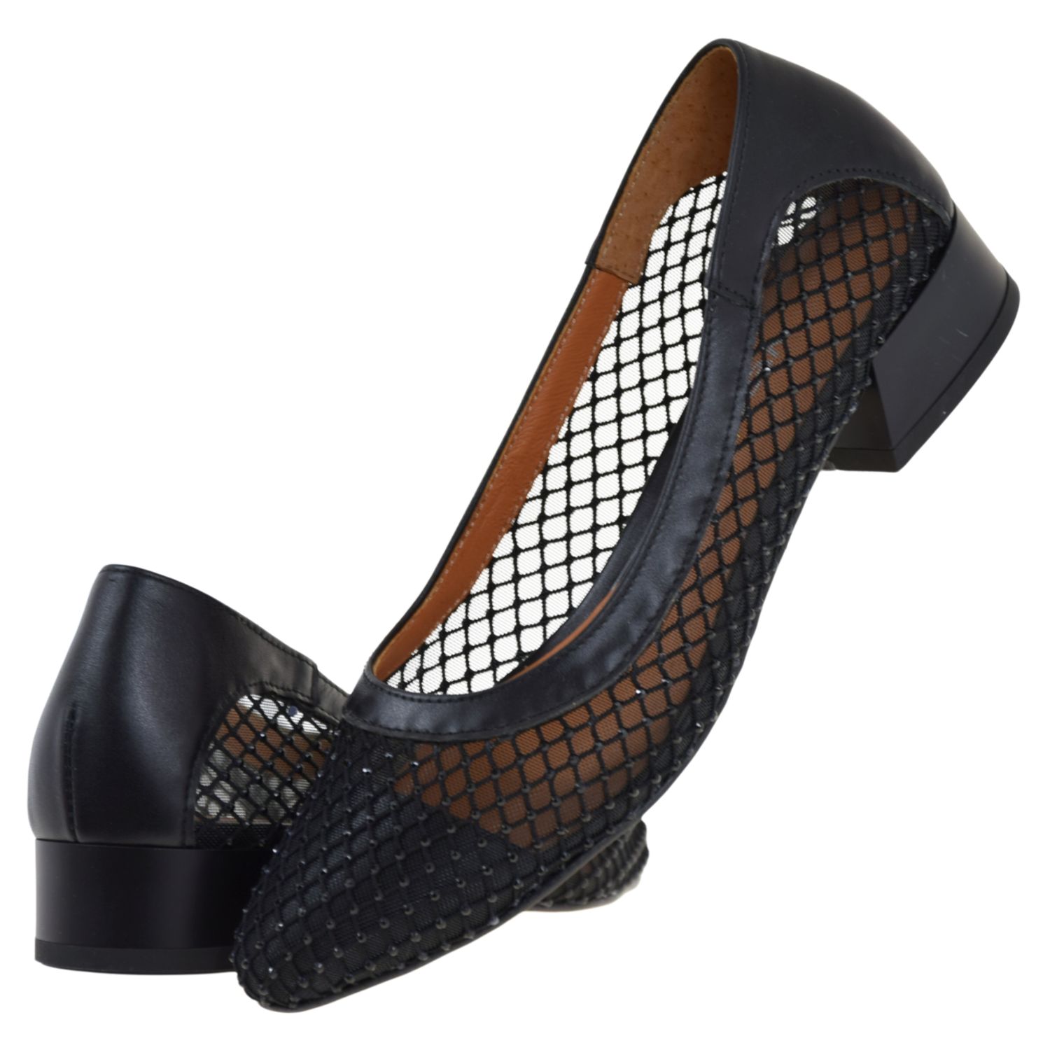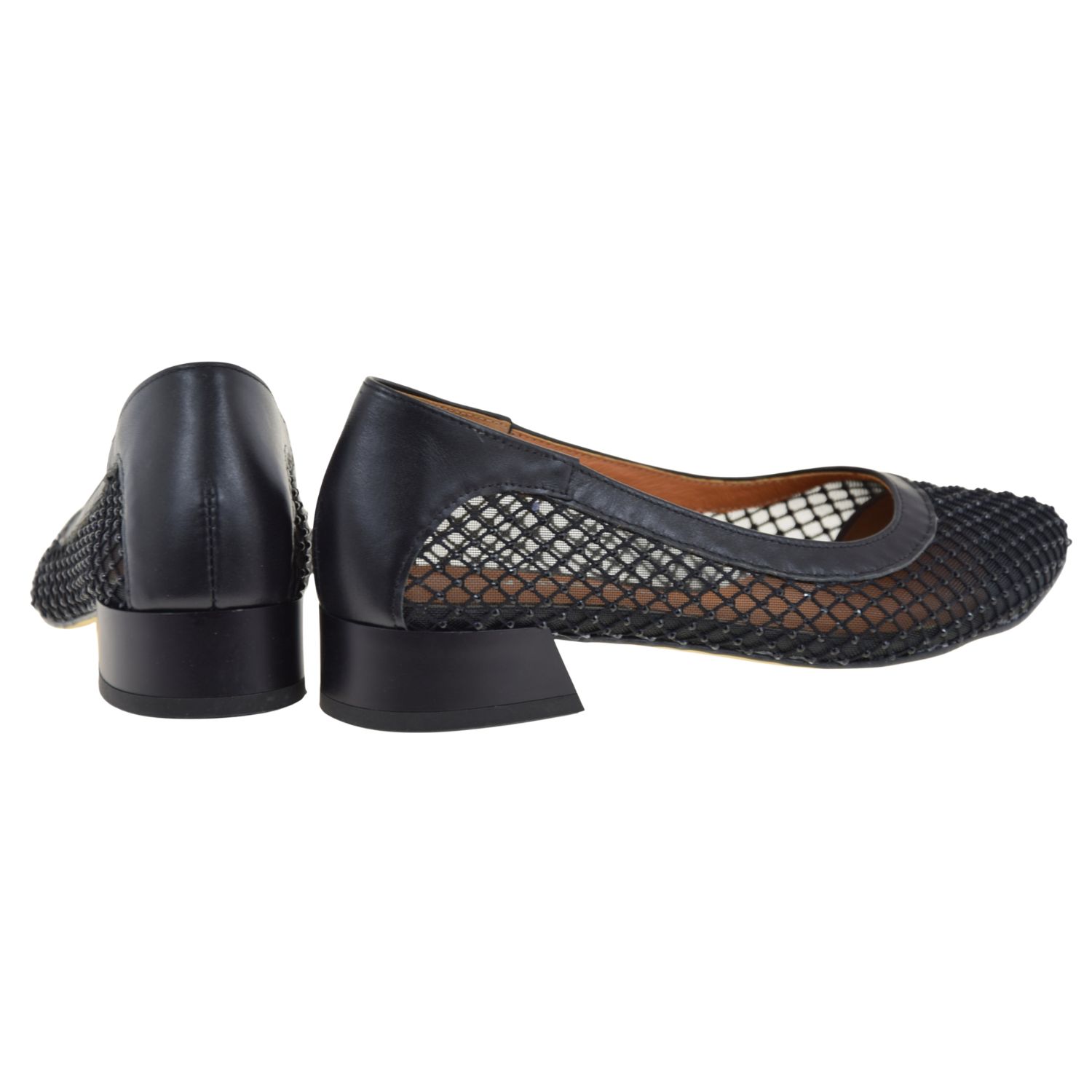 Eleganckie baleriny damskie skórzane czarne ażurowe VERONNA 2006 – wygodne baleriny na obcasie 3 cm