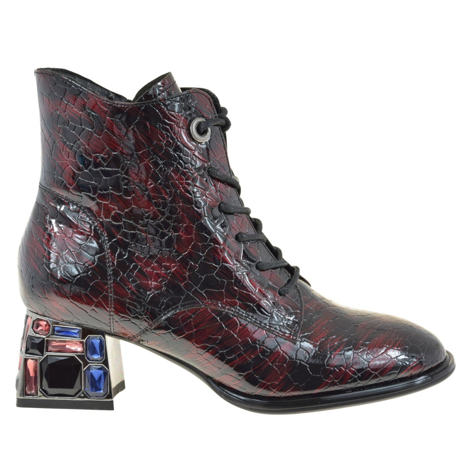 Eleganckie botki damskie Artiker 57C0130 skórzane lakierowane bordo