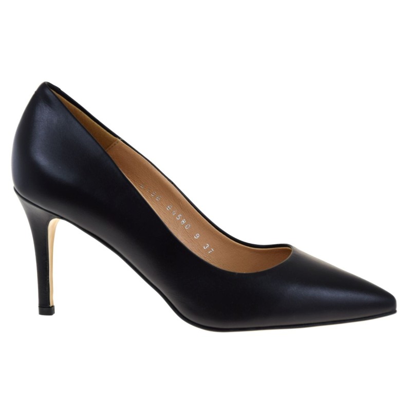 Eleganckie czółenka damskie skórzane ACORD 6156 – czarne klasyczne szpilki