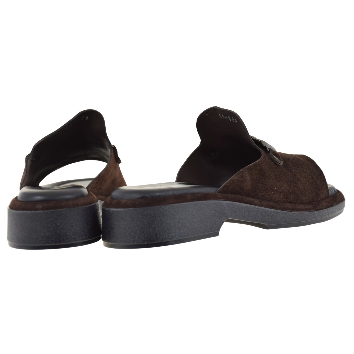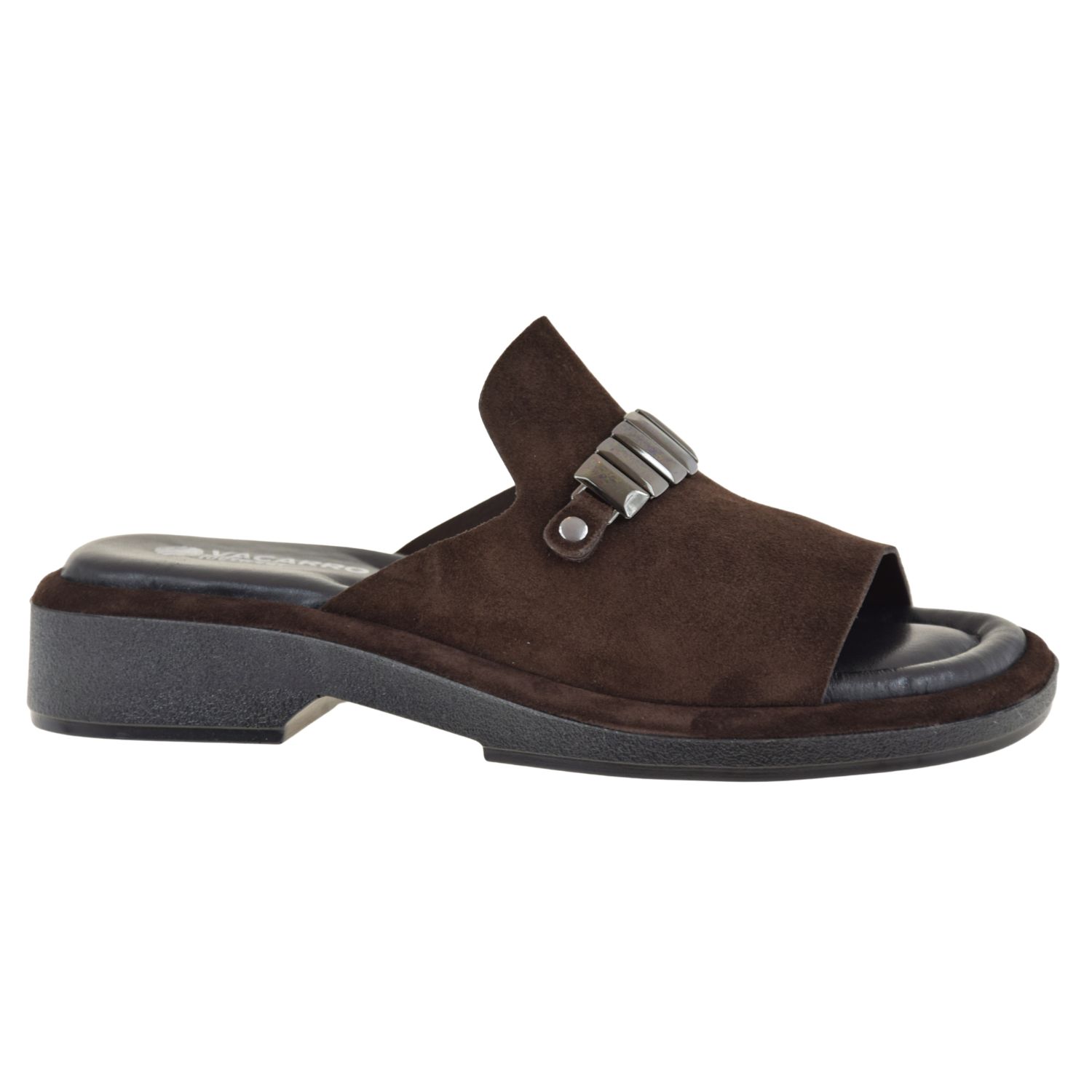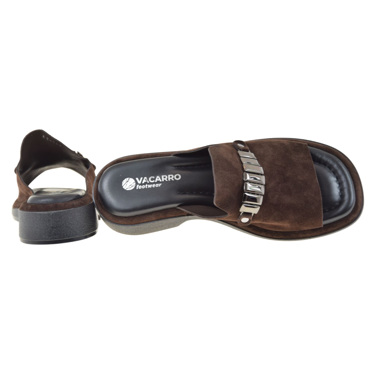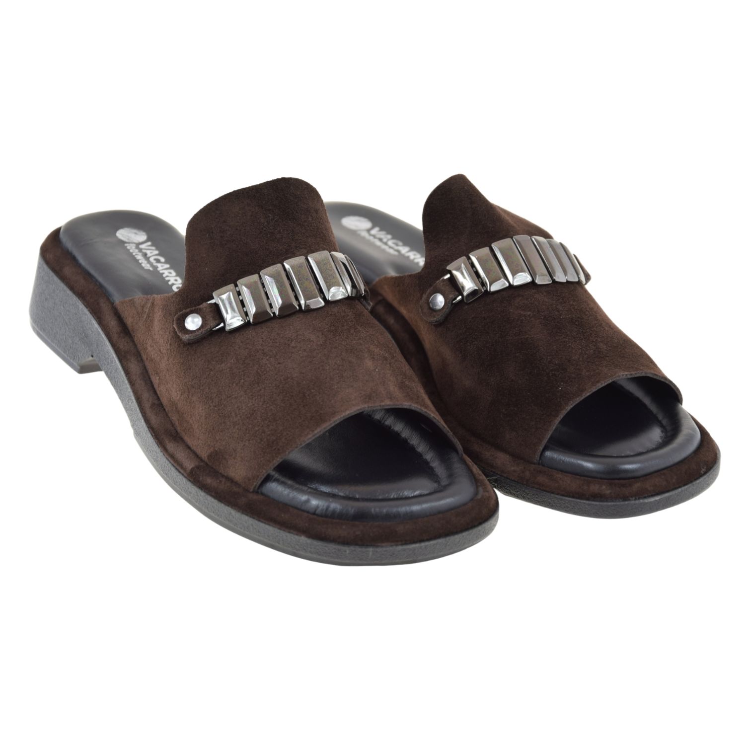 Eleganckie klapki damskie skórzane brązowe VACARRO 62 358-05 – zamszowe klapki damskie na lato i wyjątkowe okazje
