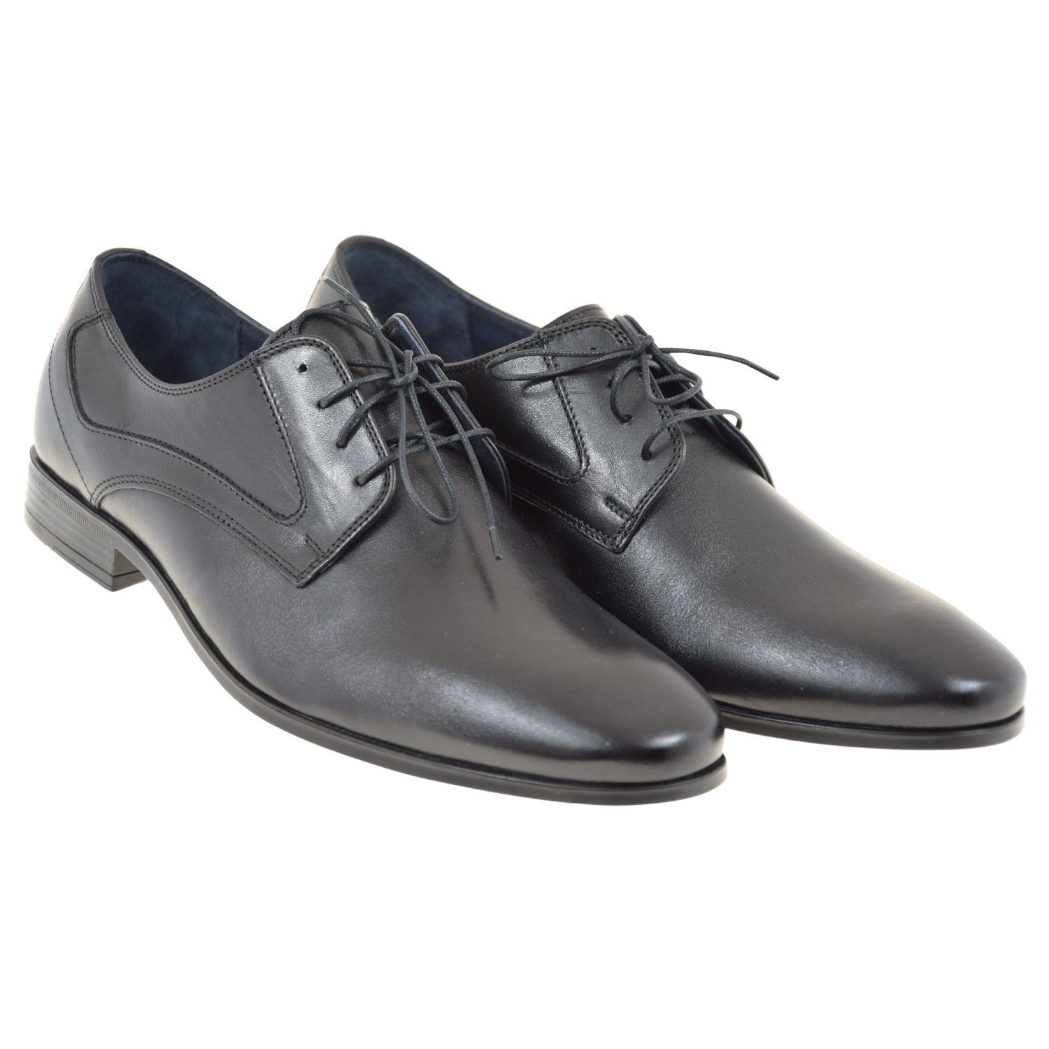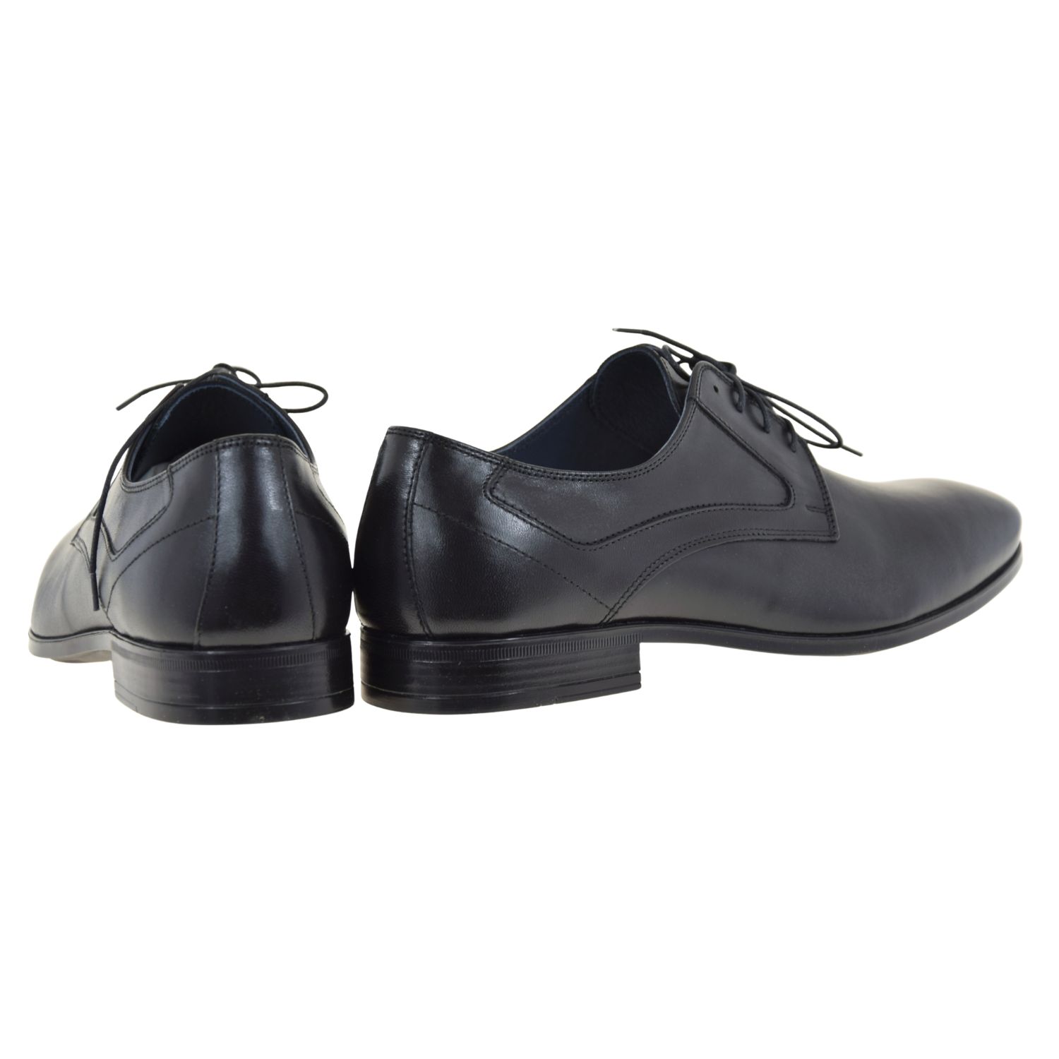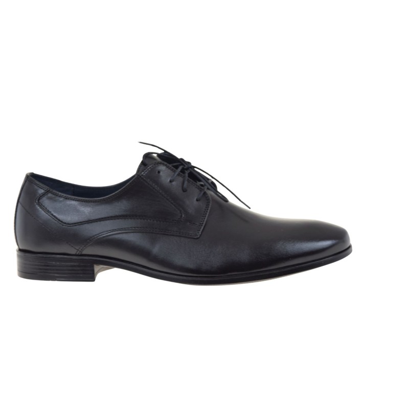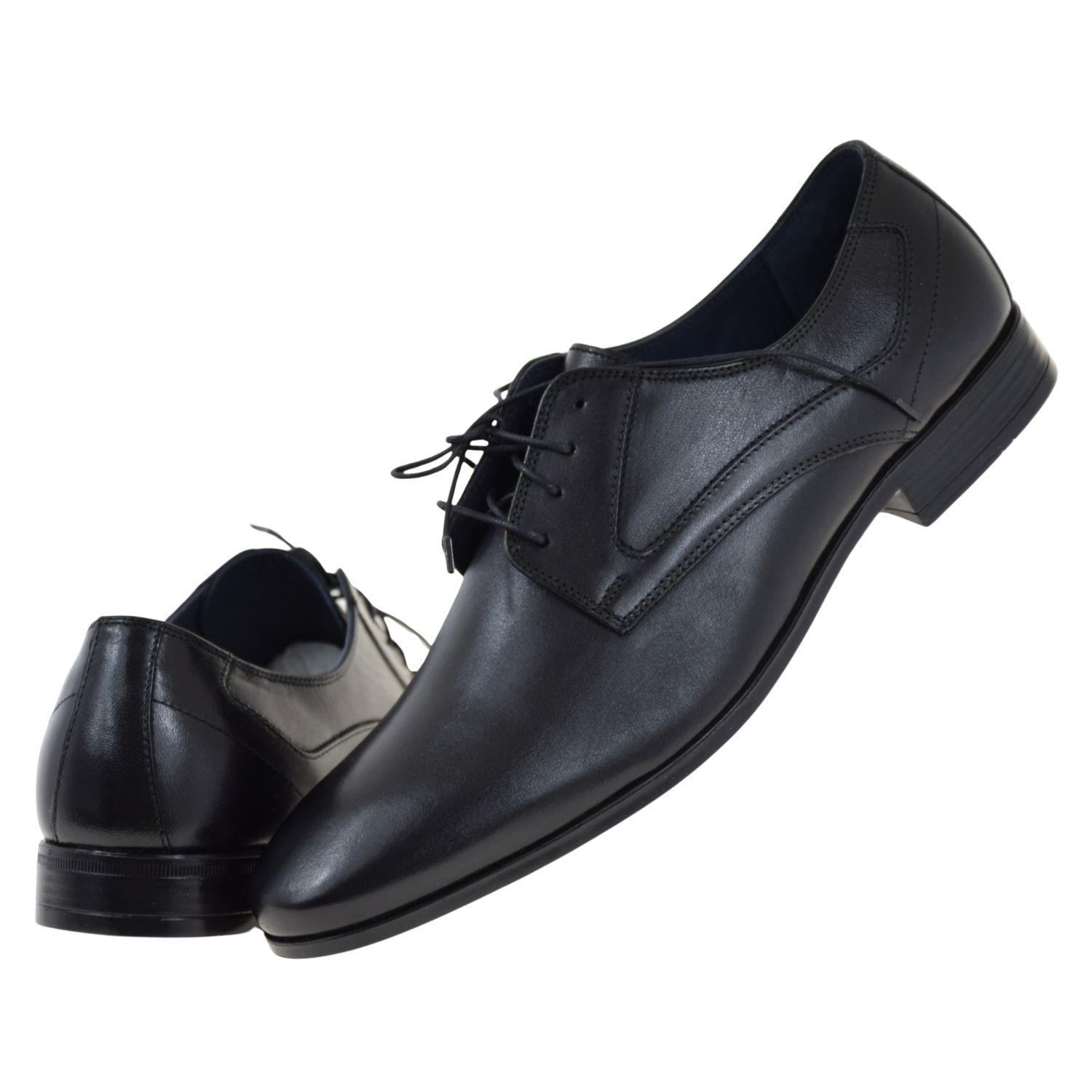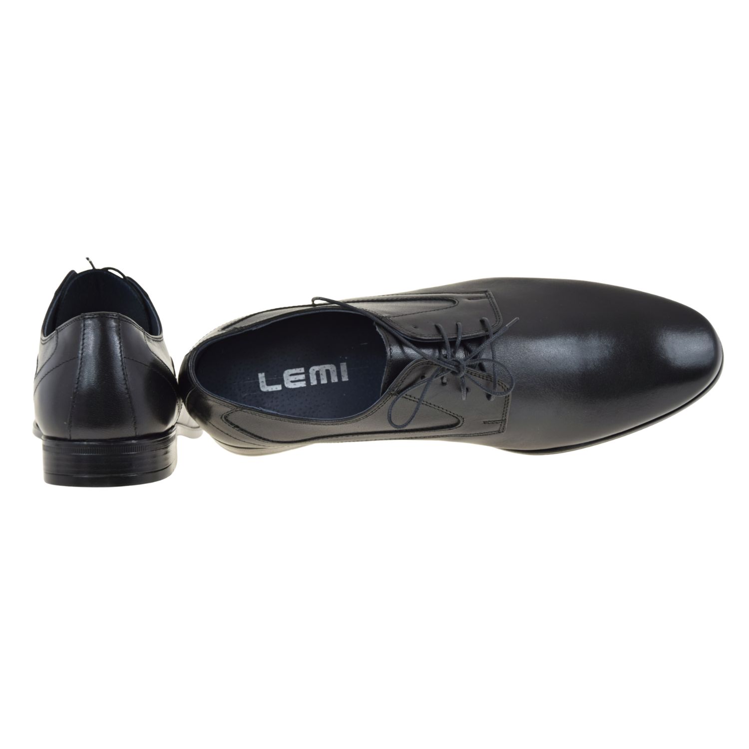 Eleganckie półbuty wizytowe męskie skórzane czarne - Lemi 753
