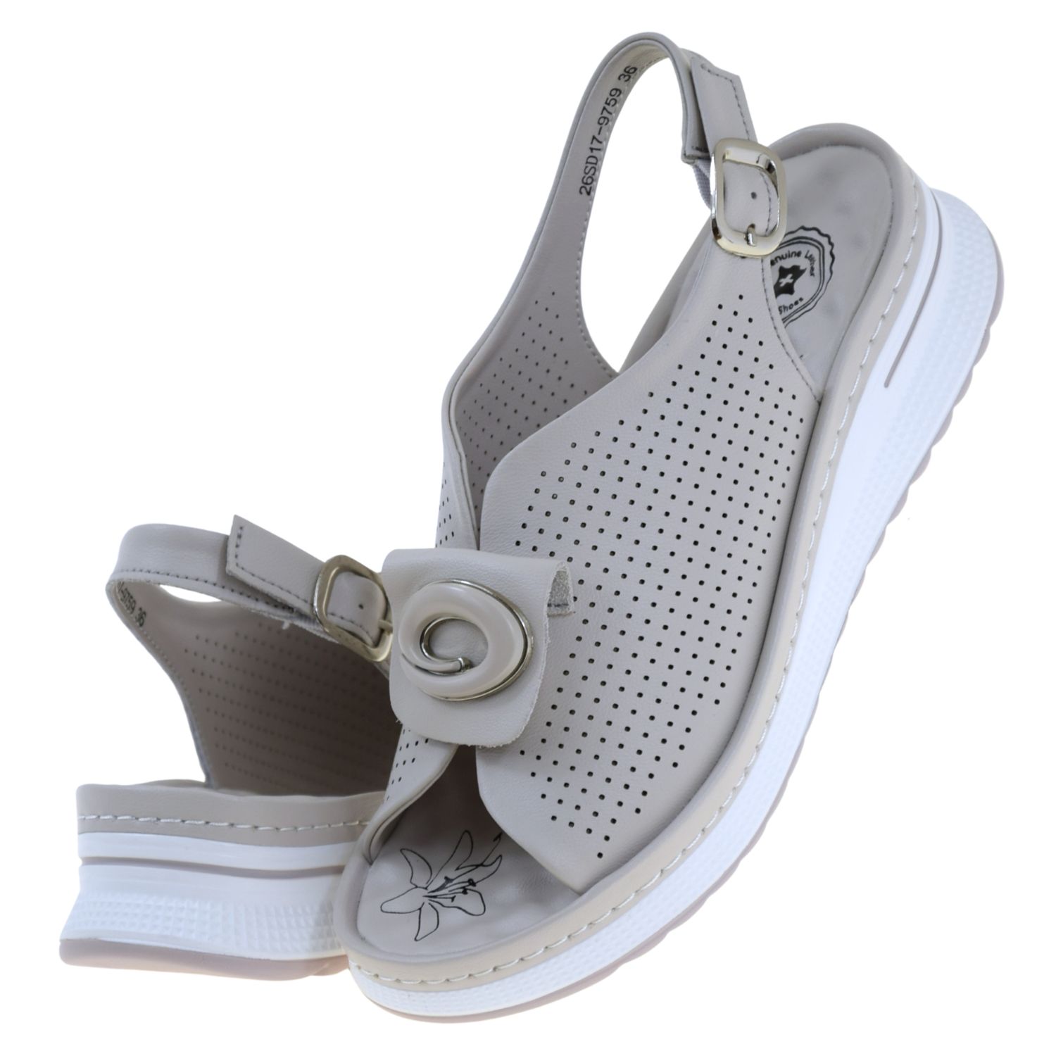 Eleganckie sandały damskie na koturnie EVENTO 9759 – beżowe sandały skórzane, wygodne sandały damskie na lato