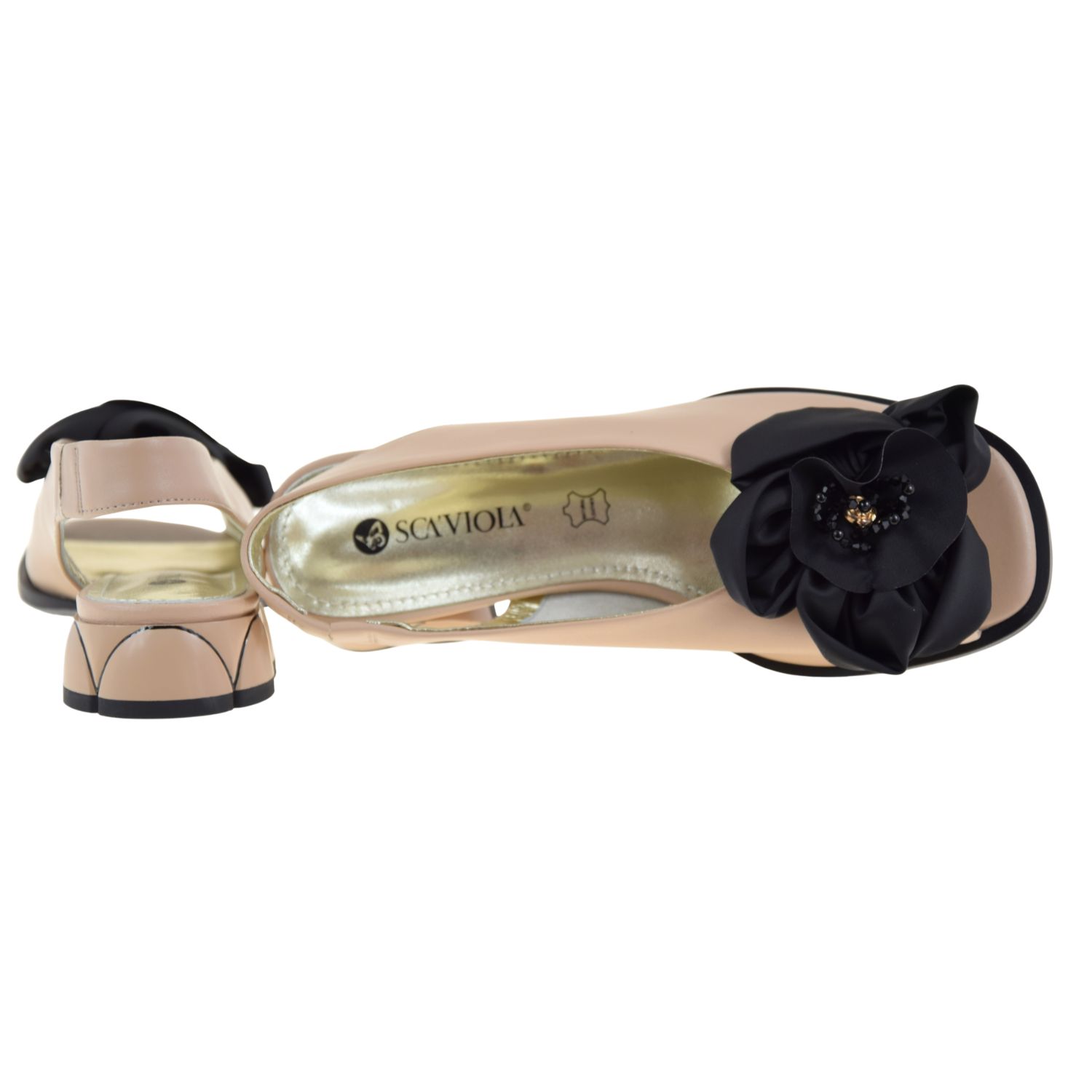 Eleganckie sandały damskie skórzane beżowe z kwiatem SCAVIOLA SC A932-140-37 BE