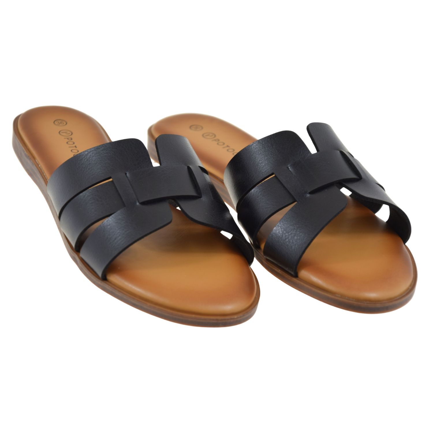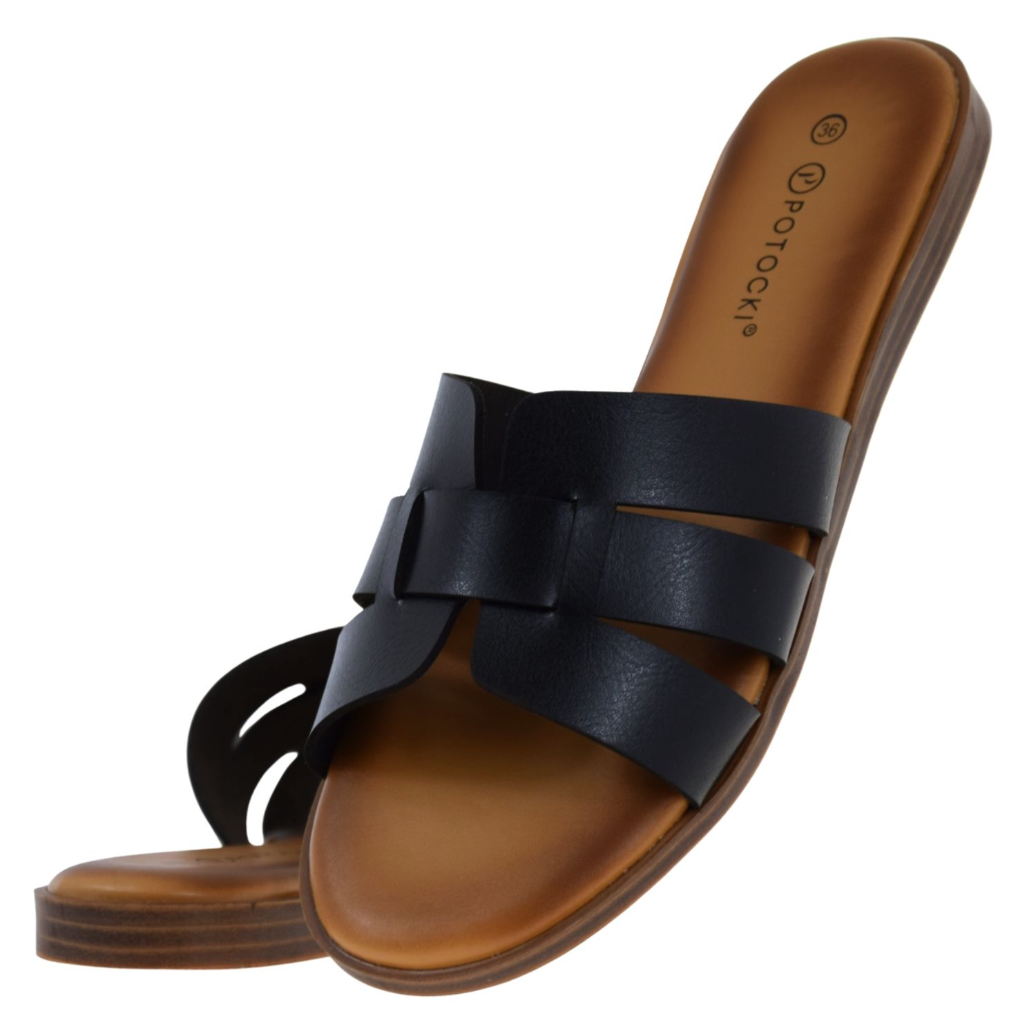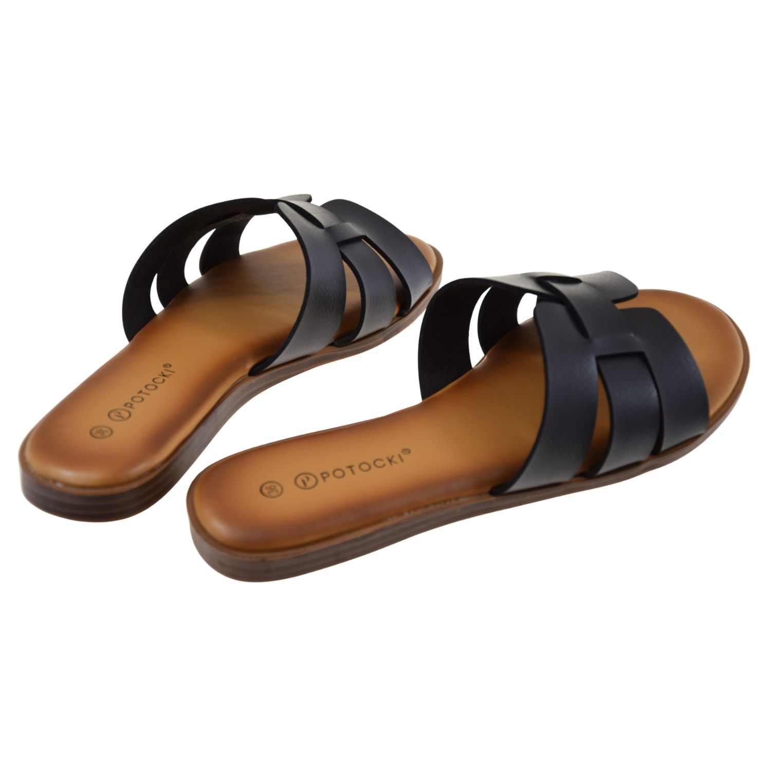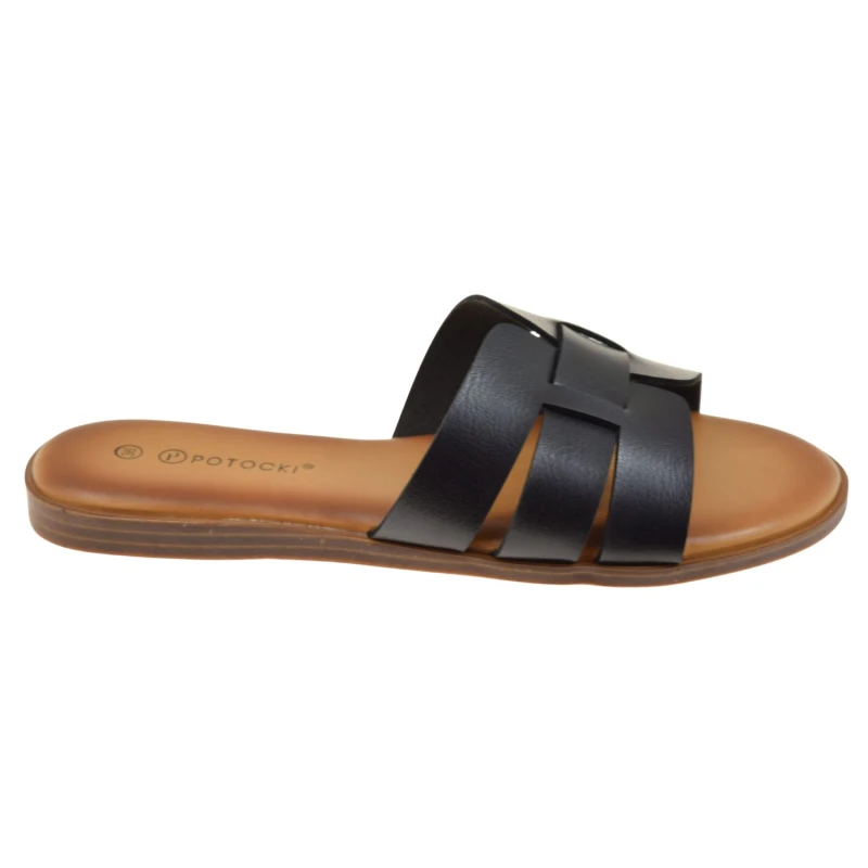 Klapki damskie czarne POTOCKI 26-30303BK – eleganckie klapki damskie na lato, wygodne klapki wsuwane, lekkie klapki do sukienki i na co dzień