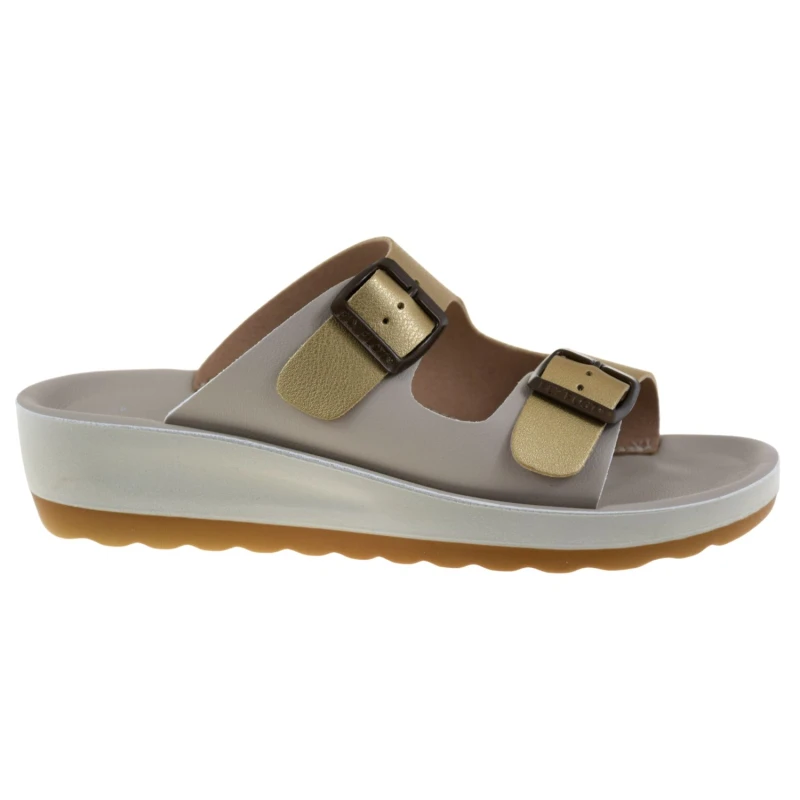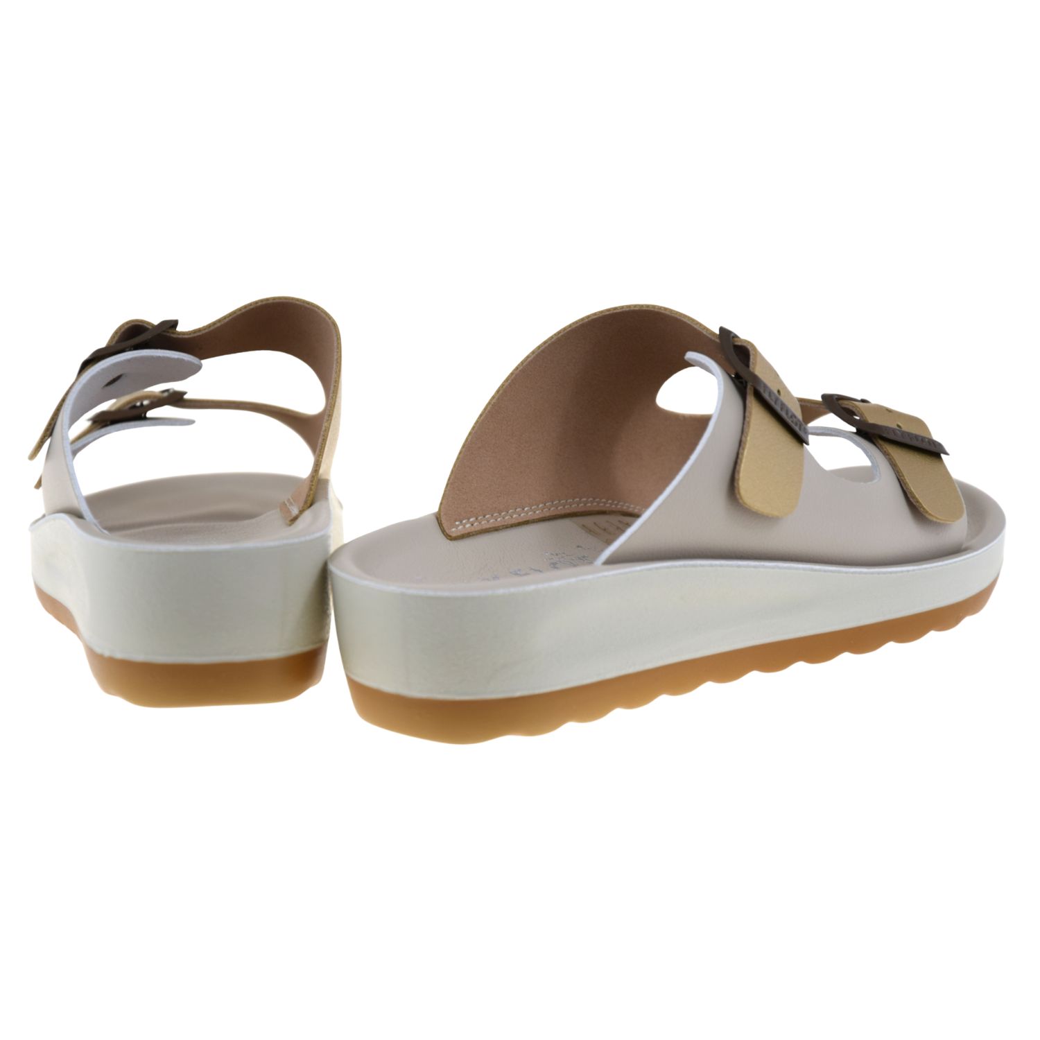 Dwie sprzączki pozwalają dopasować tęgość do stopy, dzięki czemu klapki dobrze leżą i są wygodne na co dzień. To idealne wygodne klapki damskie na lato, klapki na wakacje, klapki damskie na koturnie, beżowe klapki damskie oraz włoskie klapki FLY FLOT do sukienek, spodni i codziennych zestawów.