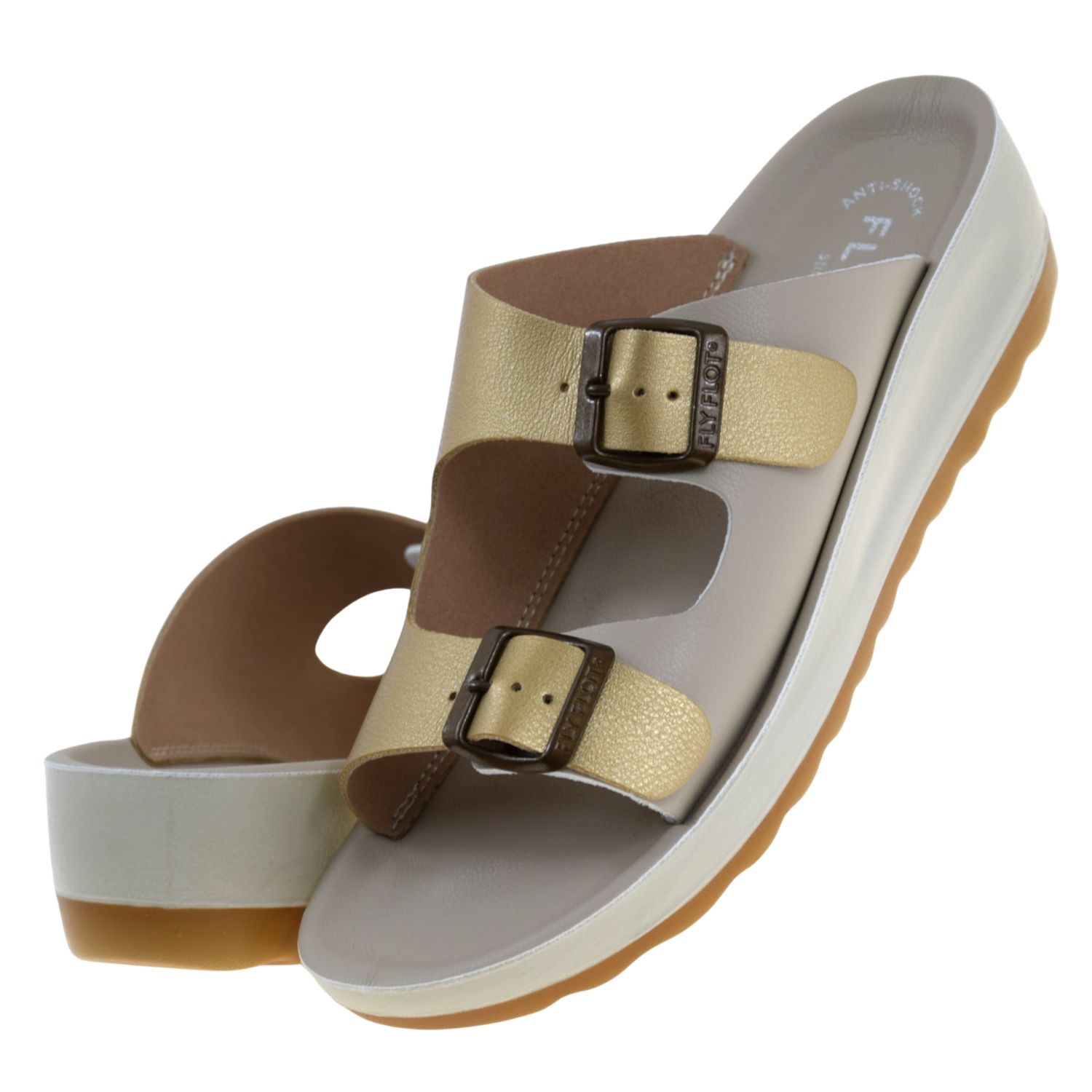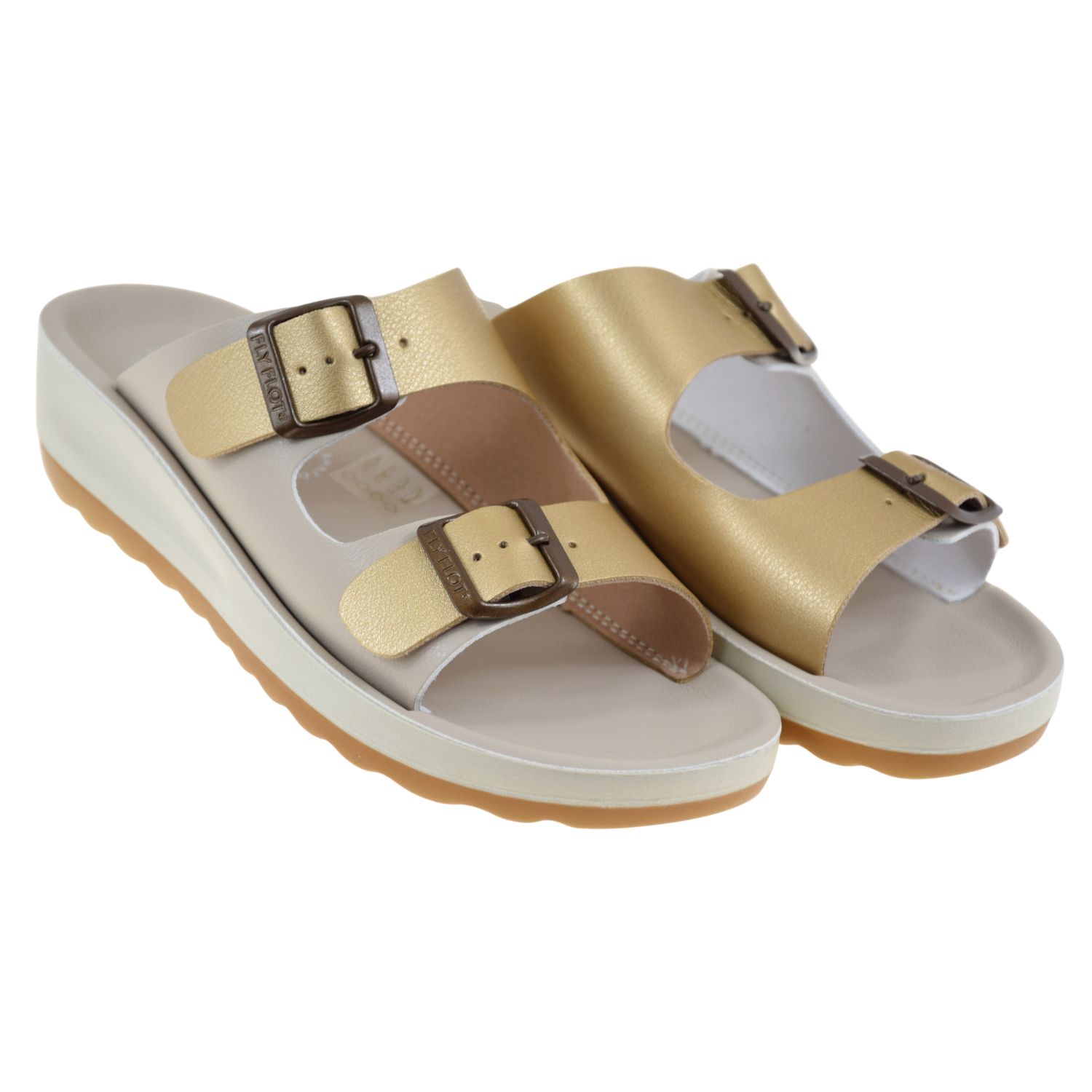 Klapki damskie FLY FLOT 42 G64 ZZ beżowo-złote – wygodne włoskie klapki na koturnie