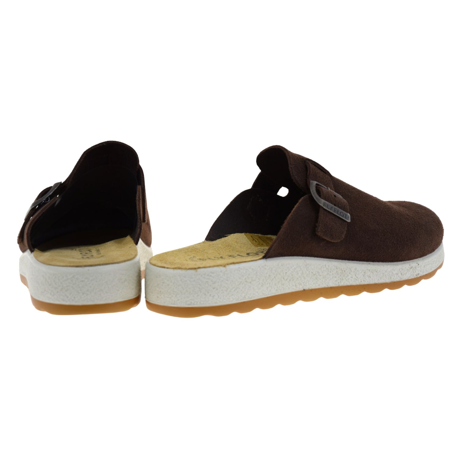 Klapki damskie FLY FLOT 51 J83 CC – brązowe klapki zamszowe barefoot, wygodne klapki damskie na lato i co dzień