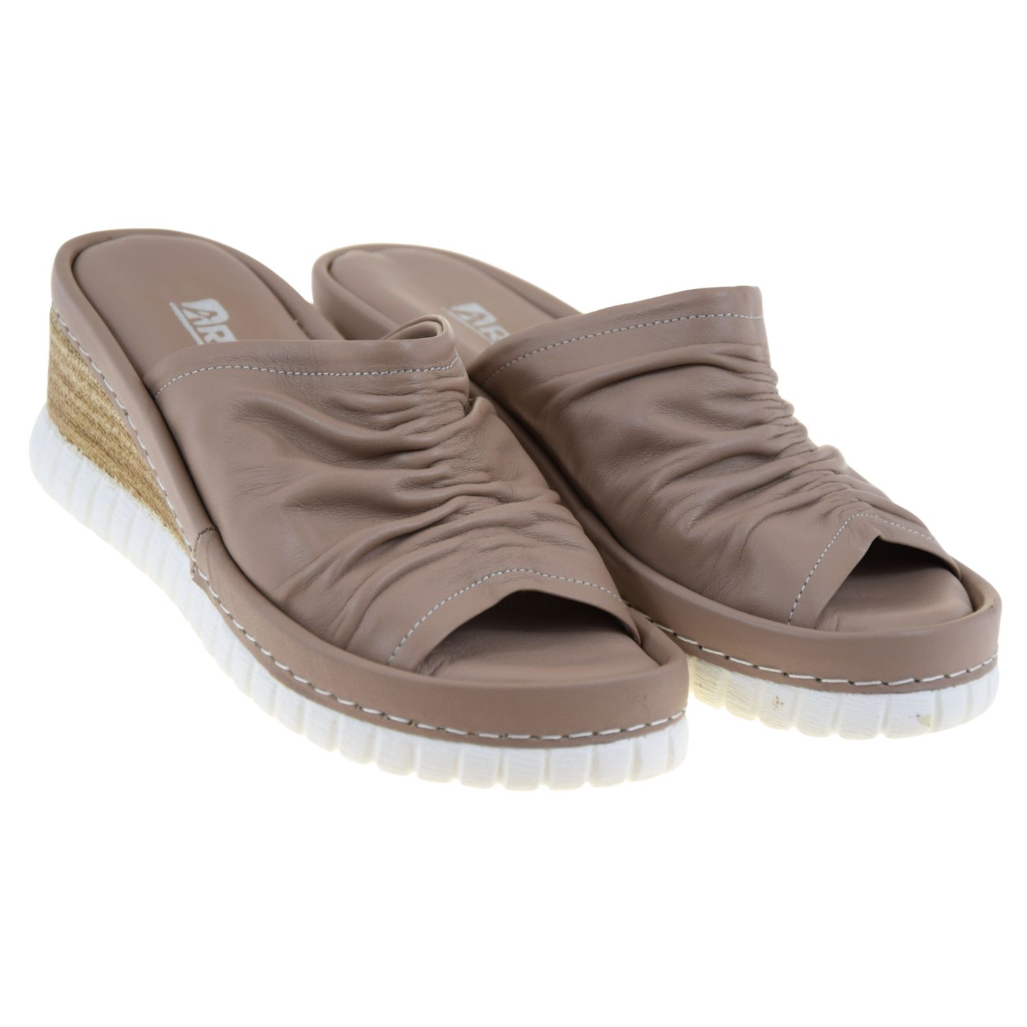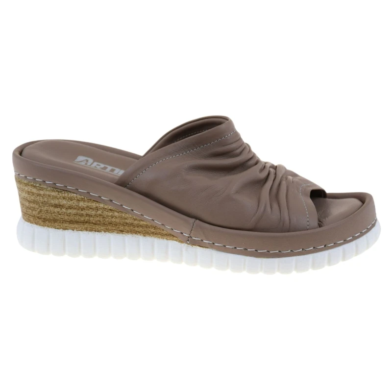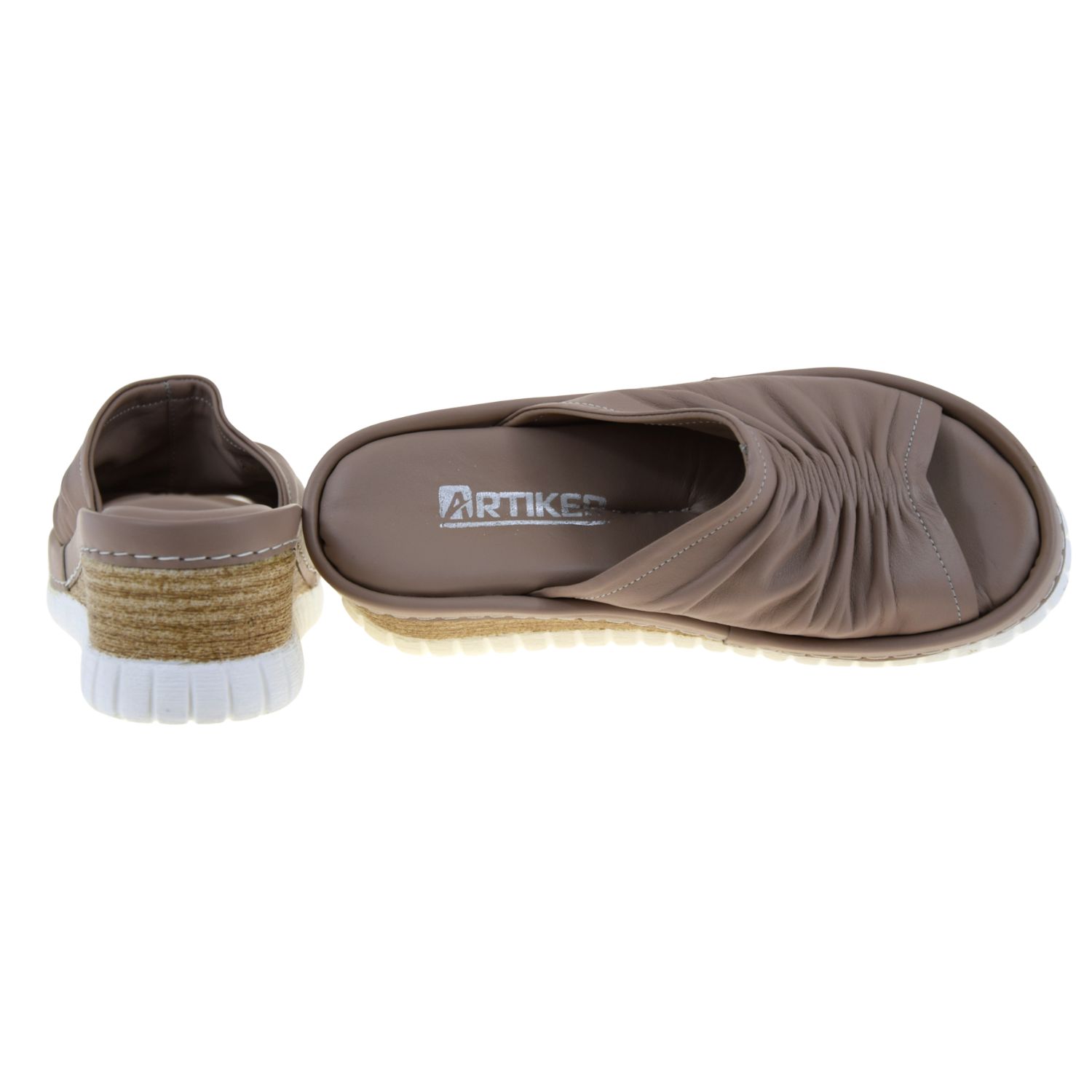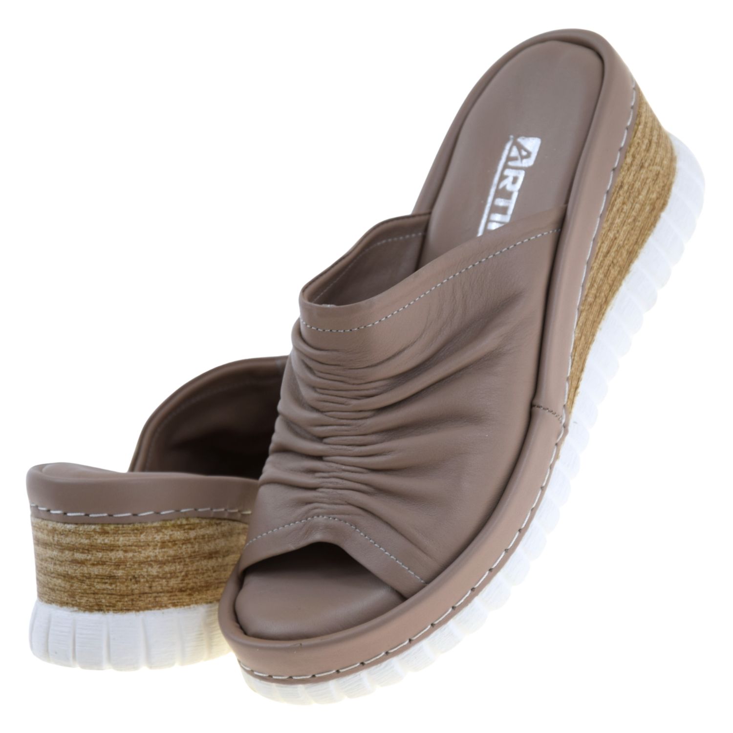 Eleganckie klapki damskie skórzane ARTIKER 58C3170 beżowe na koturnie – wygodne klapki na lato