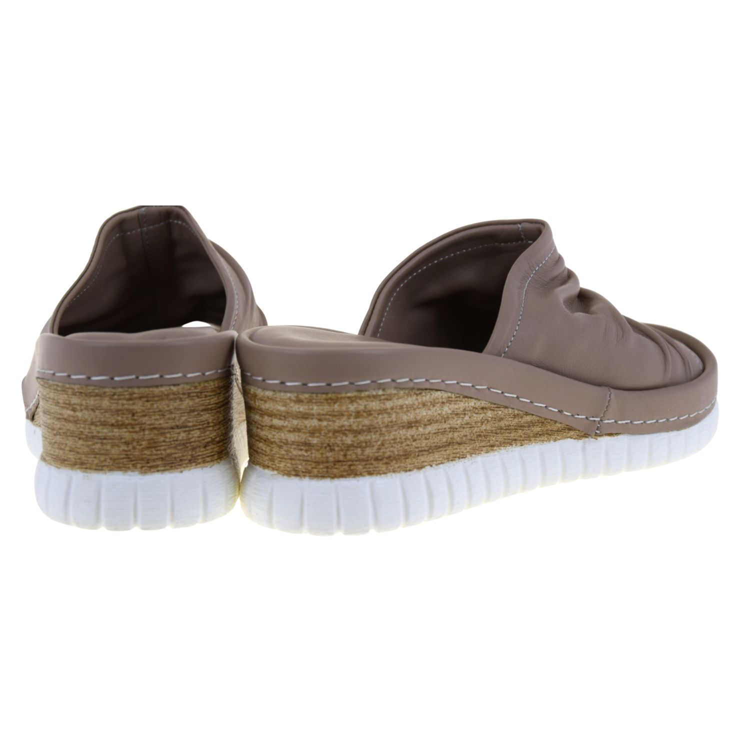 Wygodne klapki damskie na koturnie z naturalnej skóry