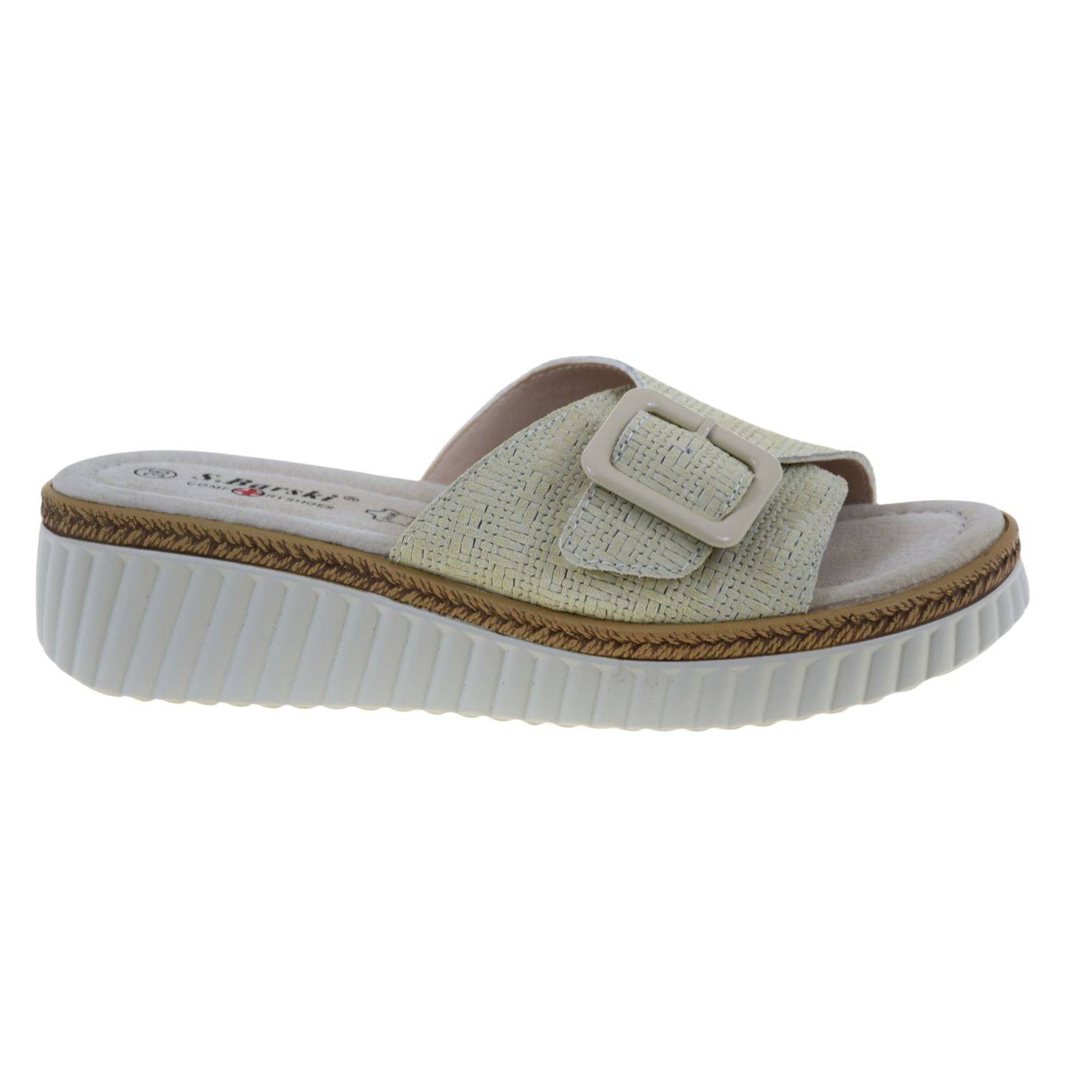 Klapki damskie na koturnie S.BARSKI LR61-7002 – beżowe skórzane klapki damskie, eleganckie klapki na lato, wygodne klapki wsuwane