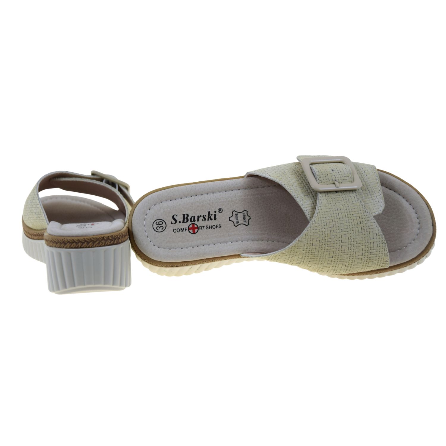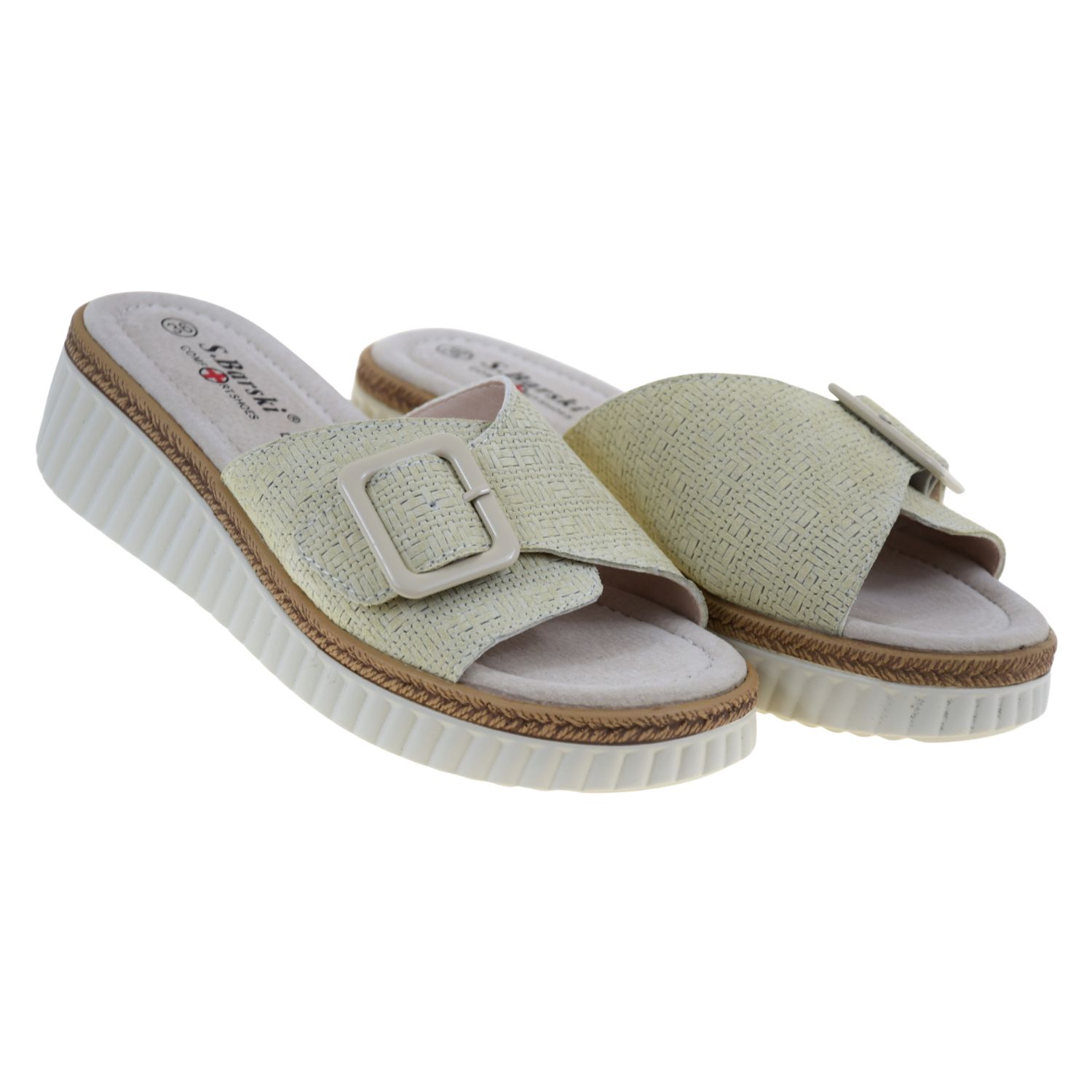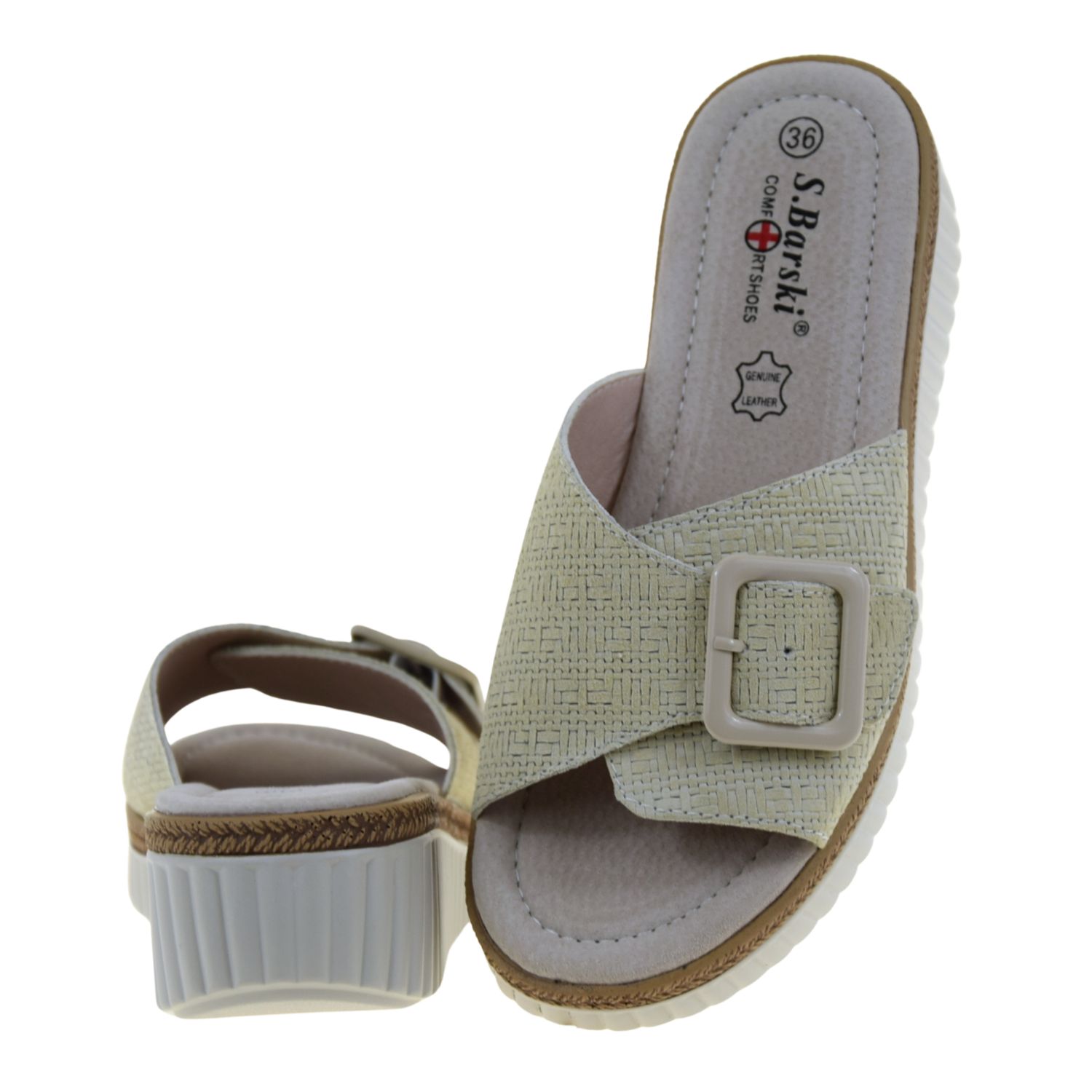 Klapki damskie skórzane beżowe na koturnie wygodne S.BARSKI LR61-7002