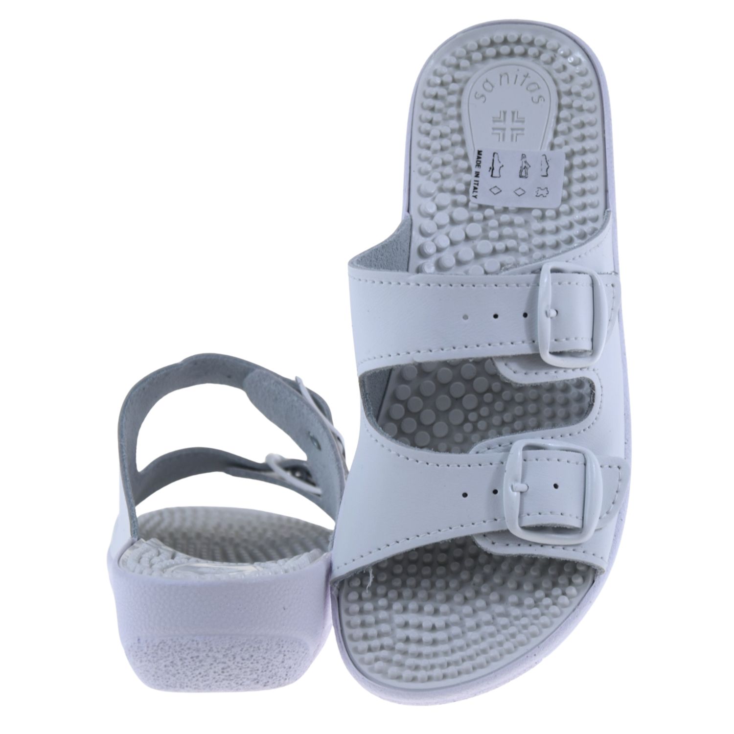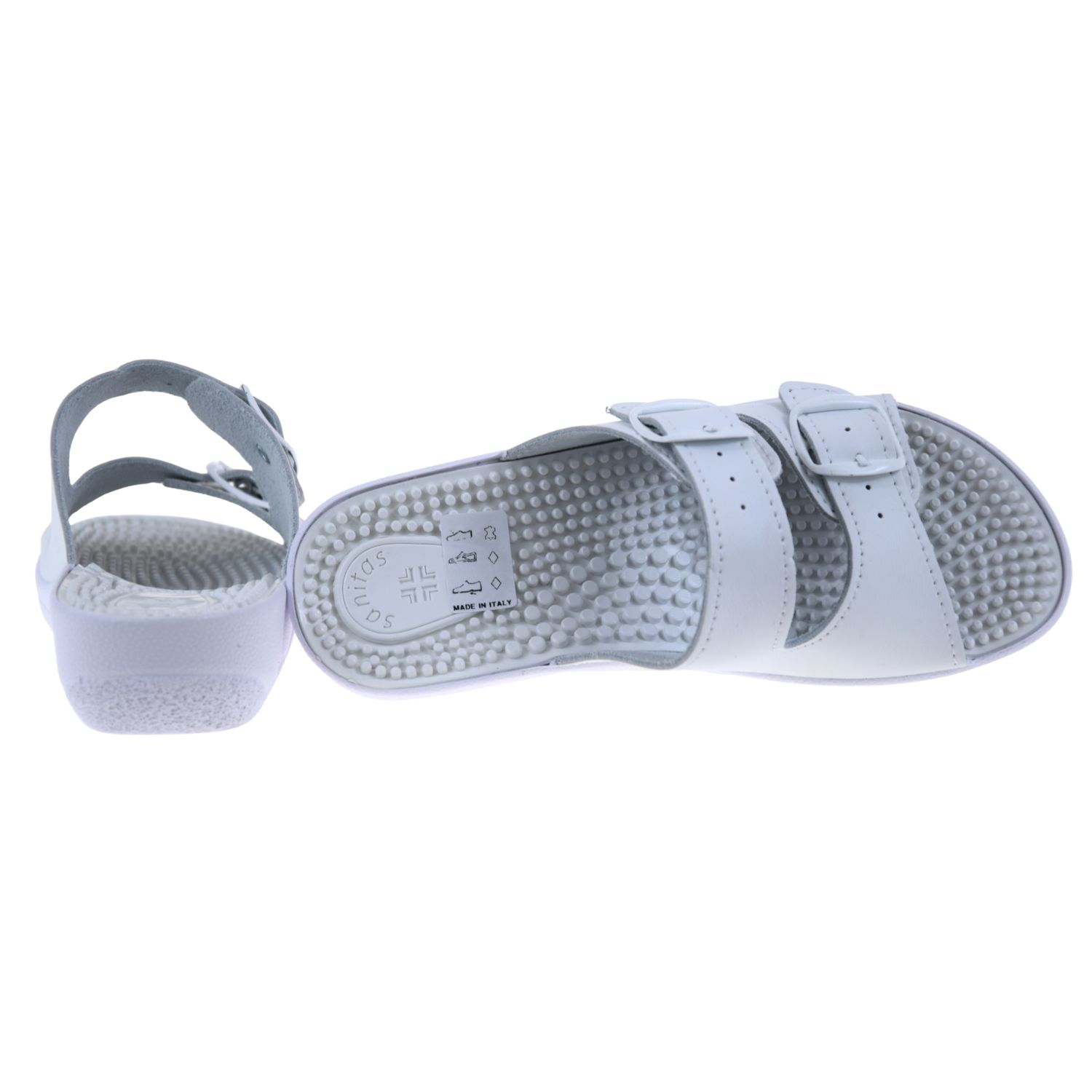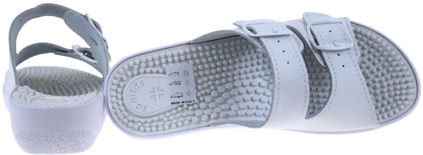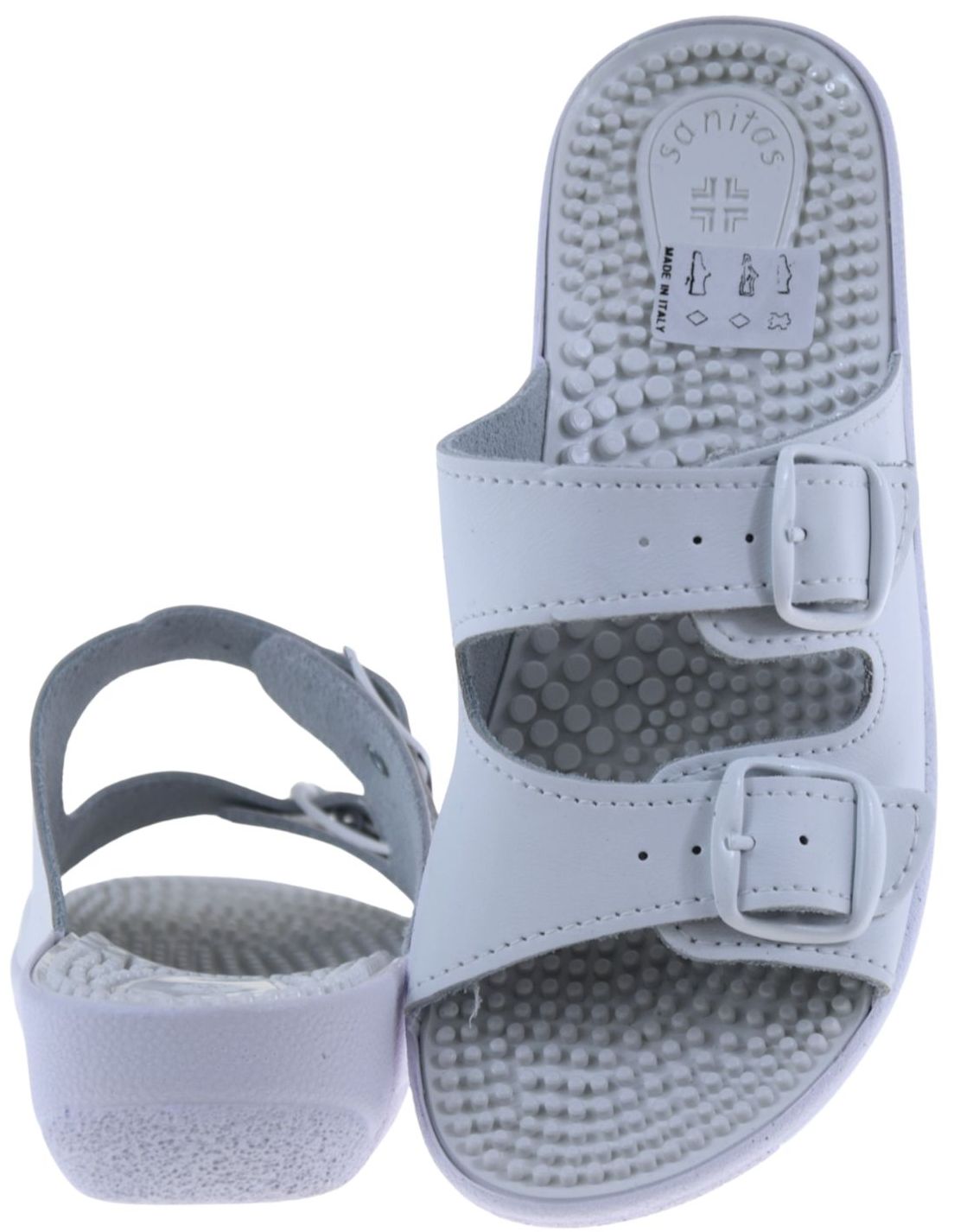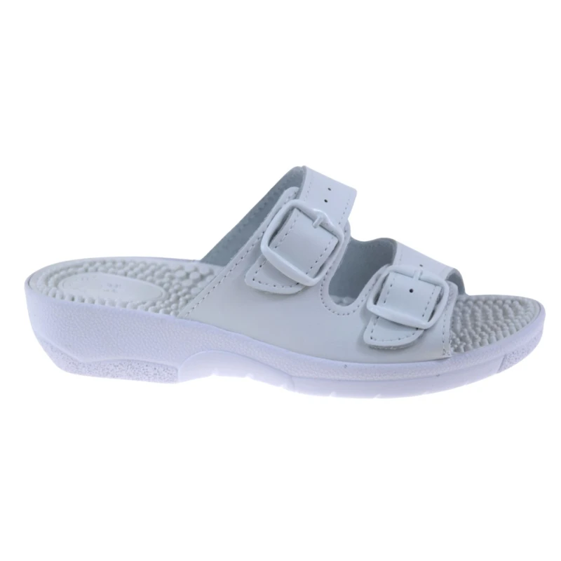 Klapki damskie skórzane medyczne białe fakirki masujące z kolcami COMFOOTY NADIA – wygodne klapki damskie na lato i do pracy