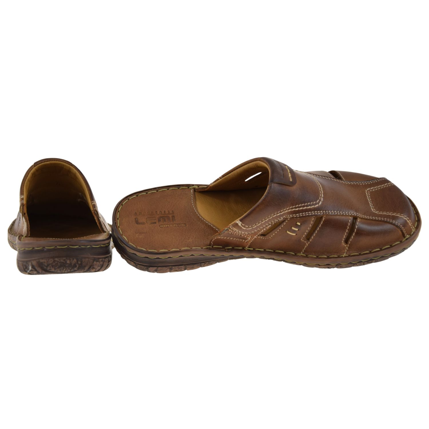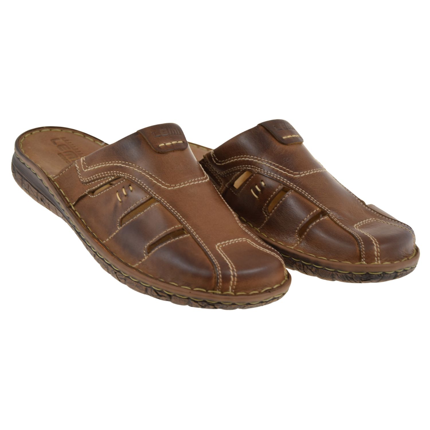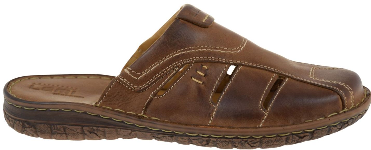 Model LEMI 601 wyróżnia się okrągłym noskiem, kontrastowymi przeszyciami i praktyczną tęgością G 1/2. To świetny wybór dla osób szukających fraz: brązowe klapki męskie, wygodne klapki skórzane, klapki męskie wsuwane, klapki męskie na lato.
