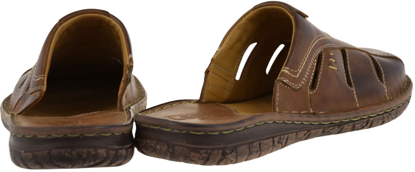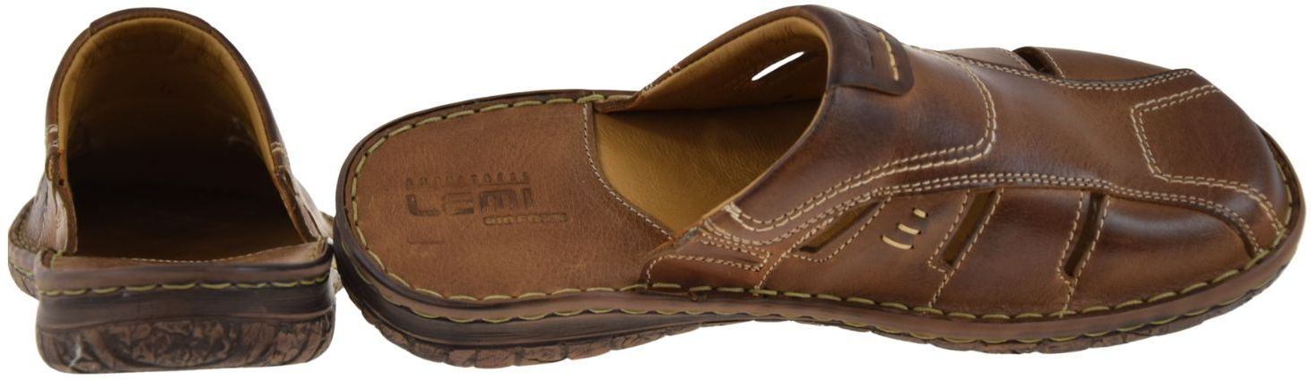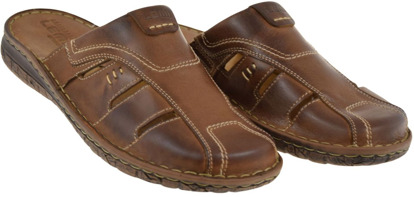 Męskie klapki skórzane brązowe LEMI 601 – wygodne wsuwane klapki na lato