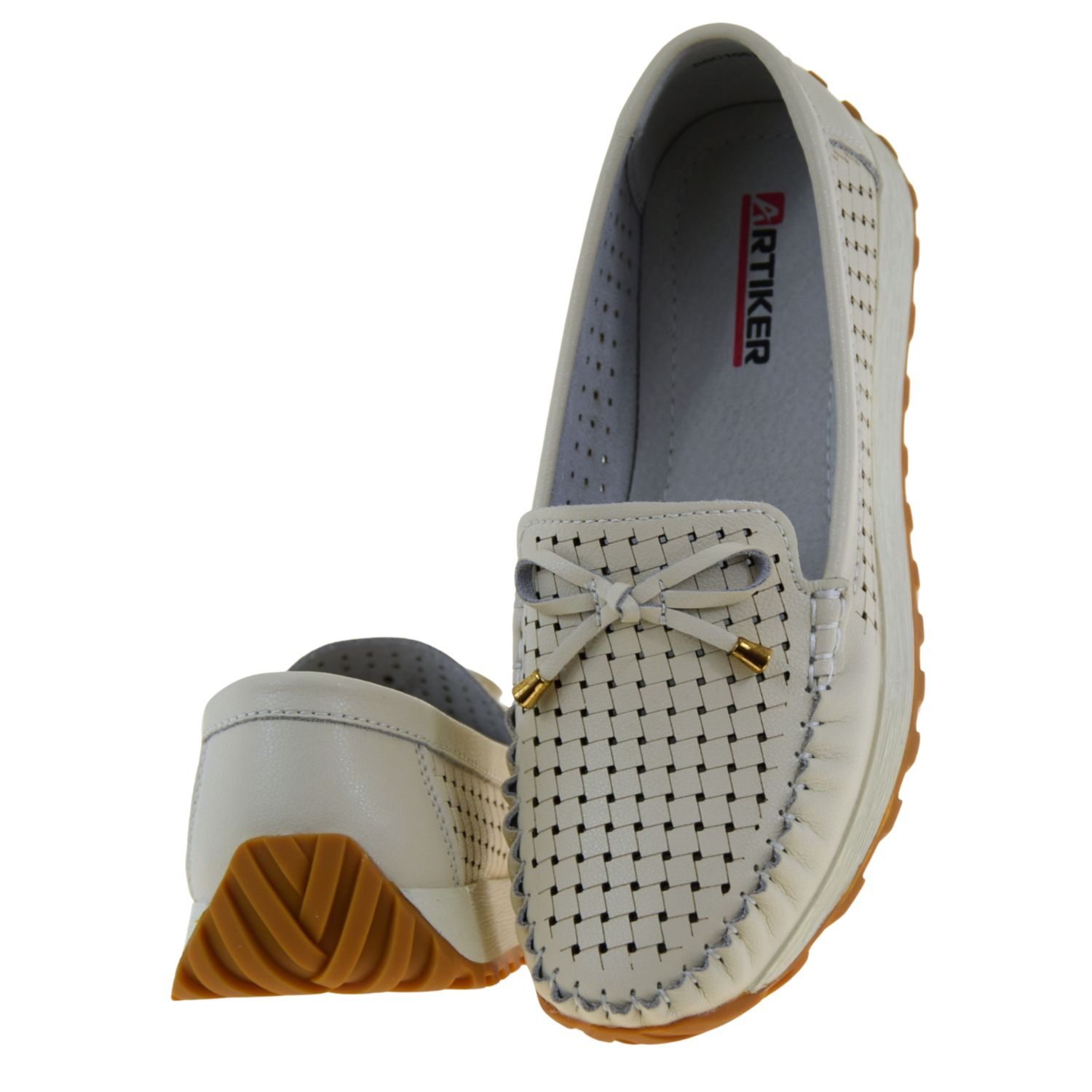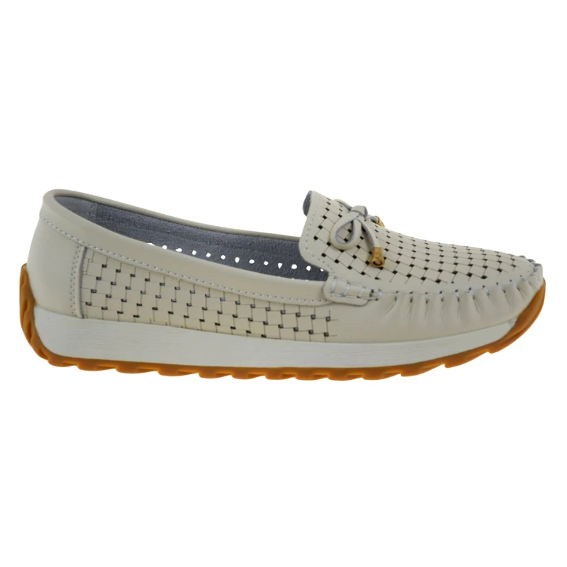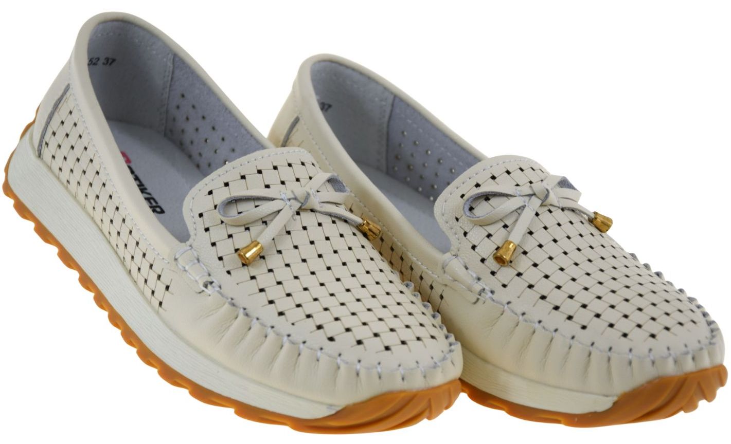 Mokasyny damskie beżowe ARTIKER 56C1852 – lordsy skórzane ażurowe, lekkie i wygodne mokasyny damskie