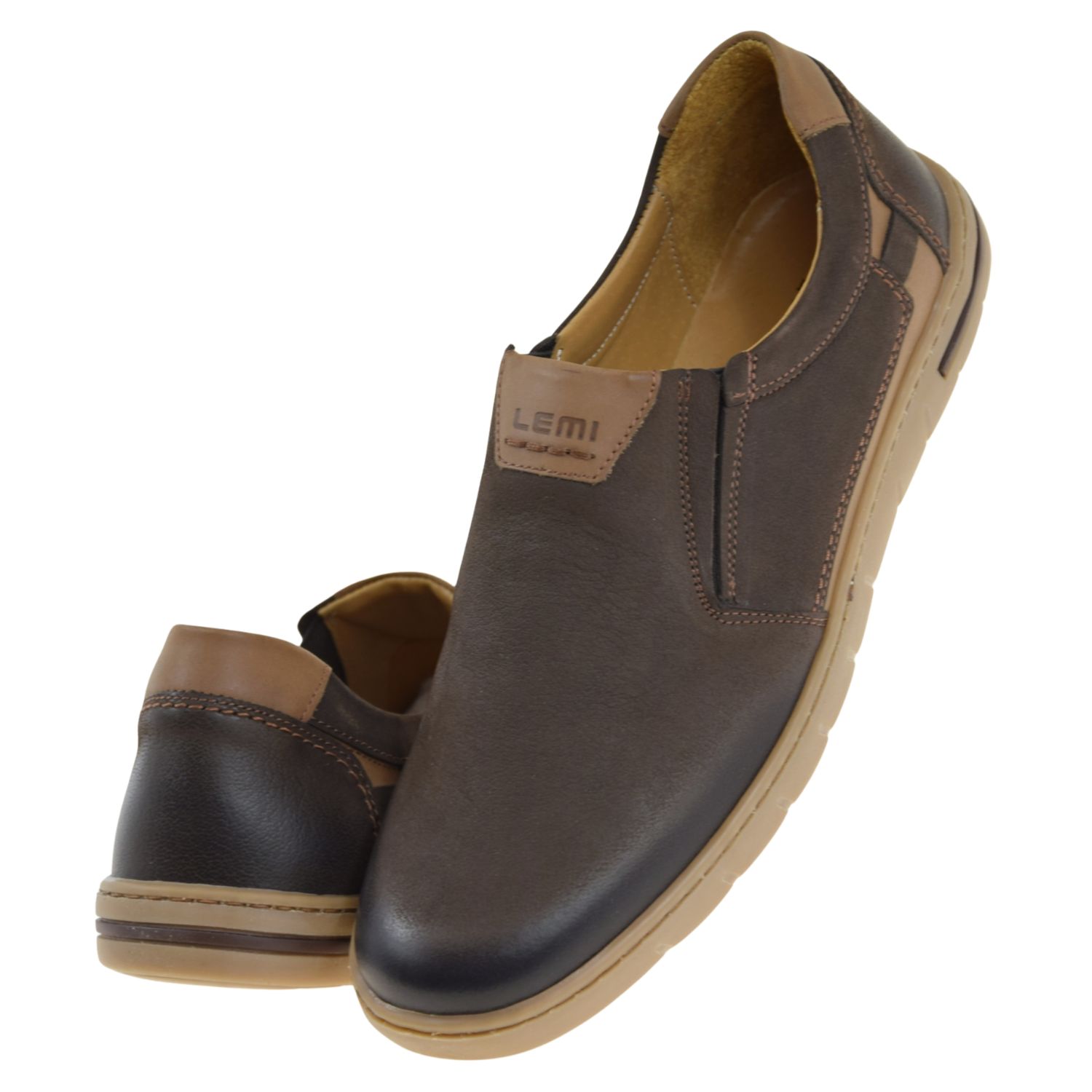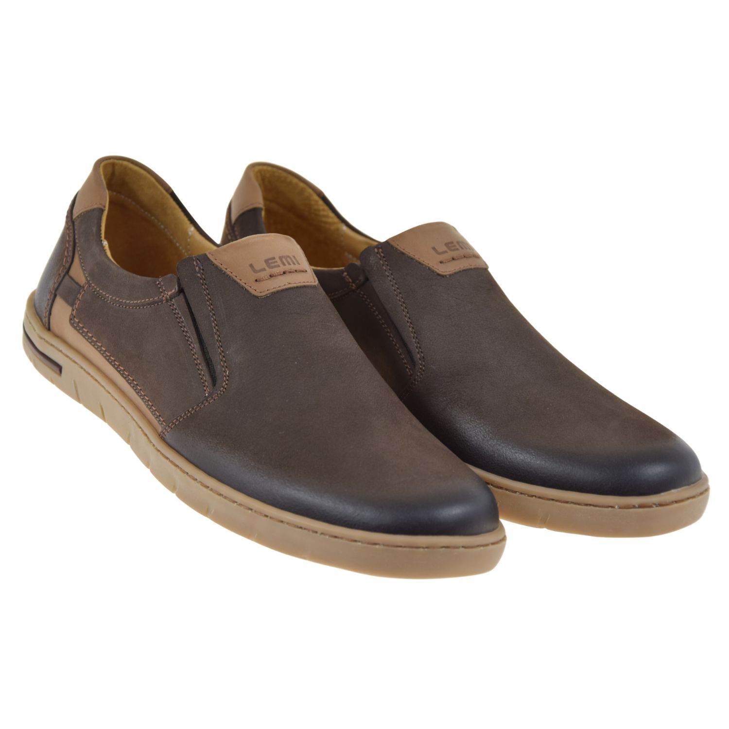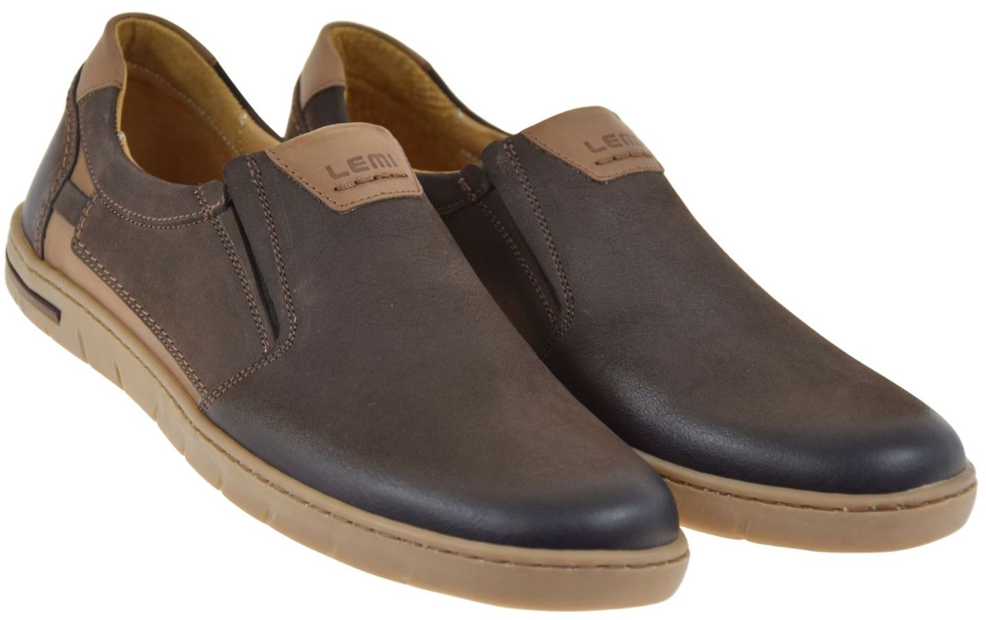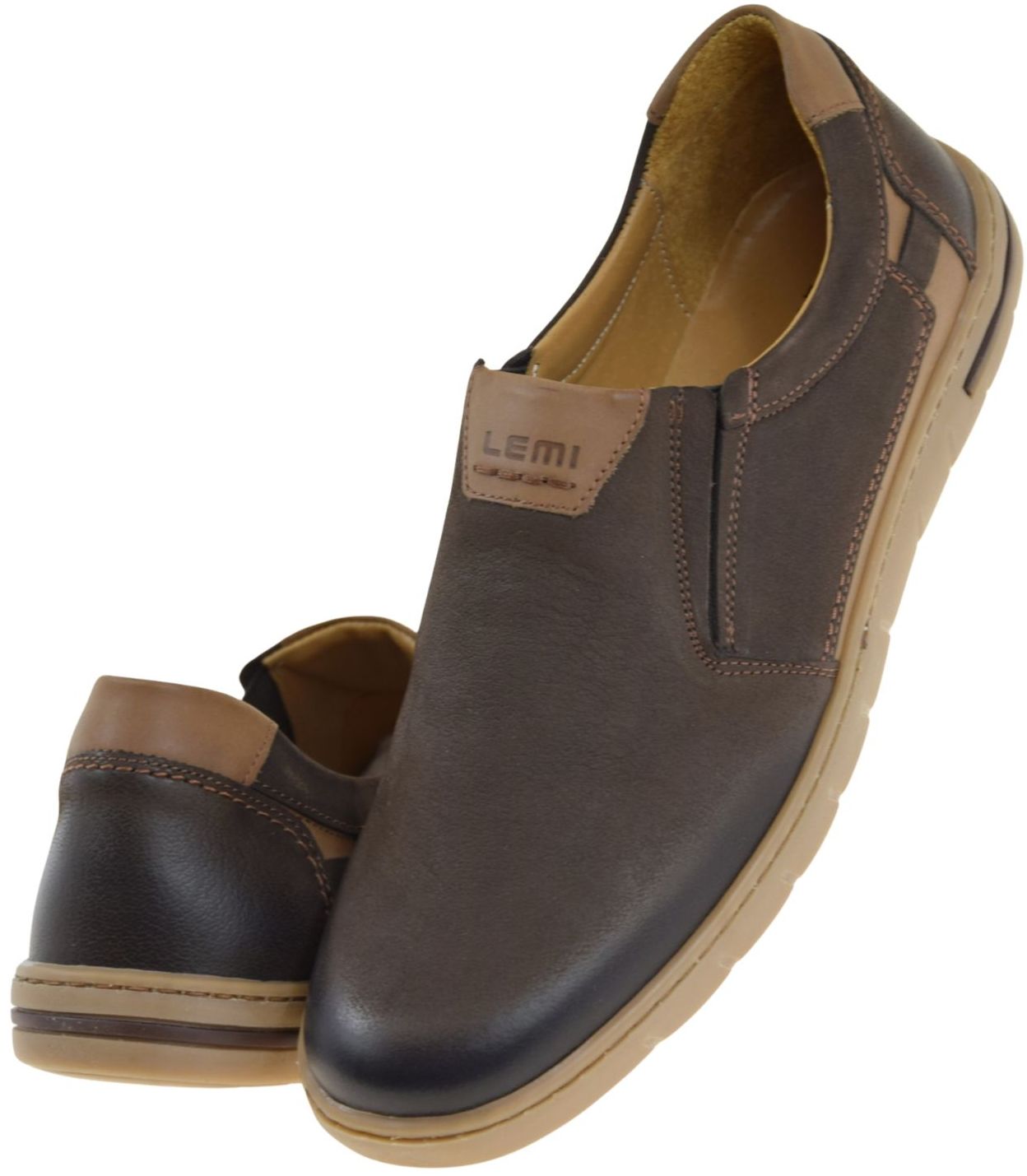 Mokasyny męskie skórzane brązowe wsuwane LEMI 942 – wygodne półbuty casual