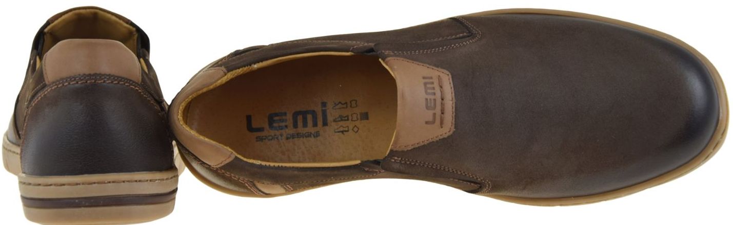 Mokasyny męskie LEMI 942 to eleganckie i komfortowe półbuty męskie wsuwane wykonane z wysokiej jakości naturalnej skóry nubukowej w brązowym kolorze. To model idealny dla mężczyzn, którzy szukają wygodnych butów na co dzień, do pracy, na spacer, wyjście do miasta oraz stylizacje smart casual.