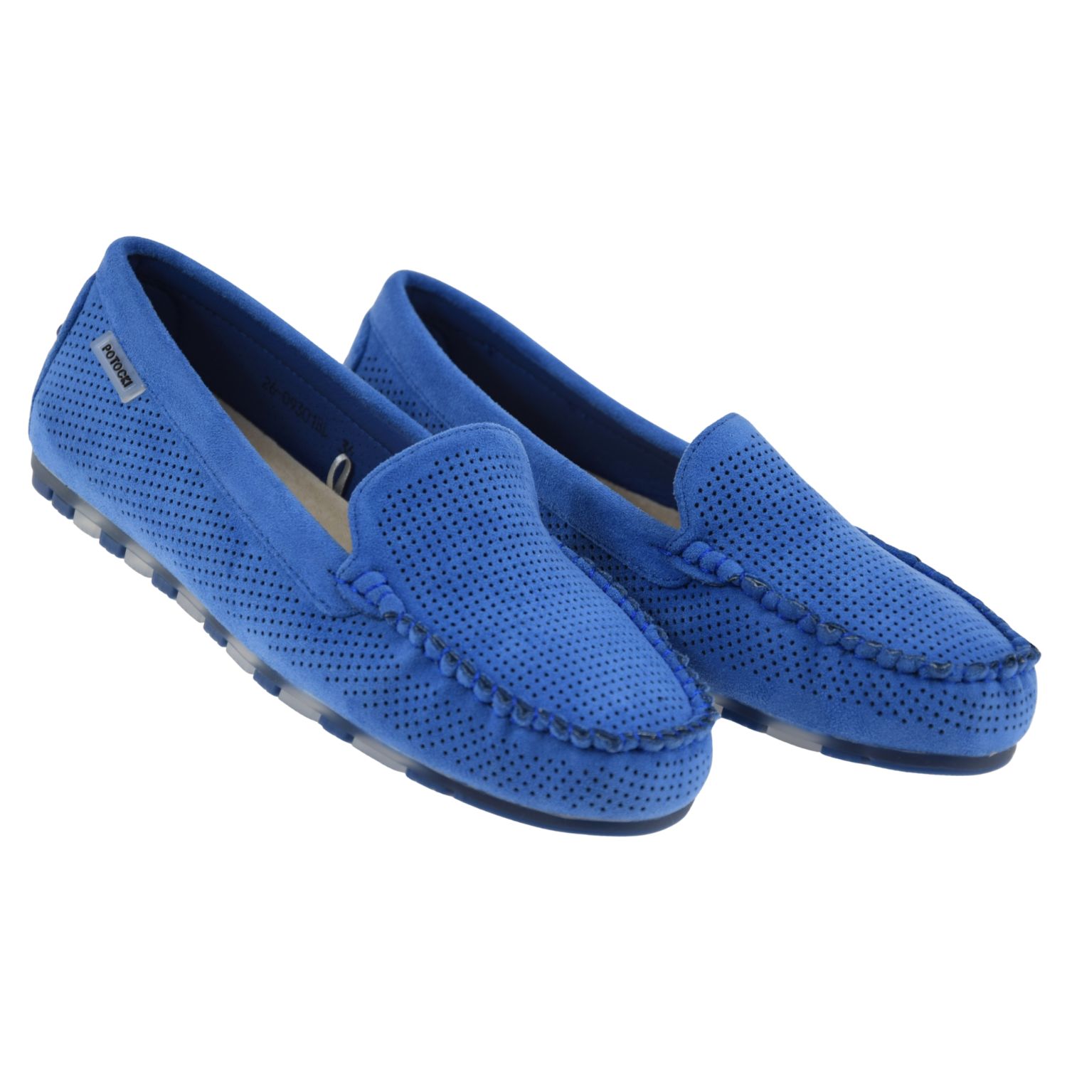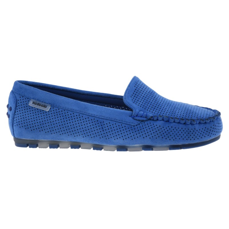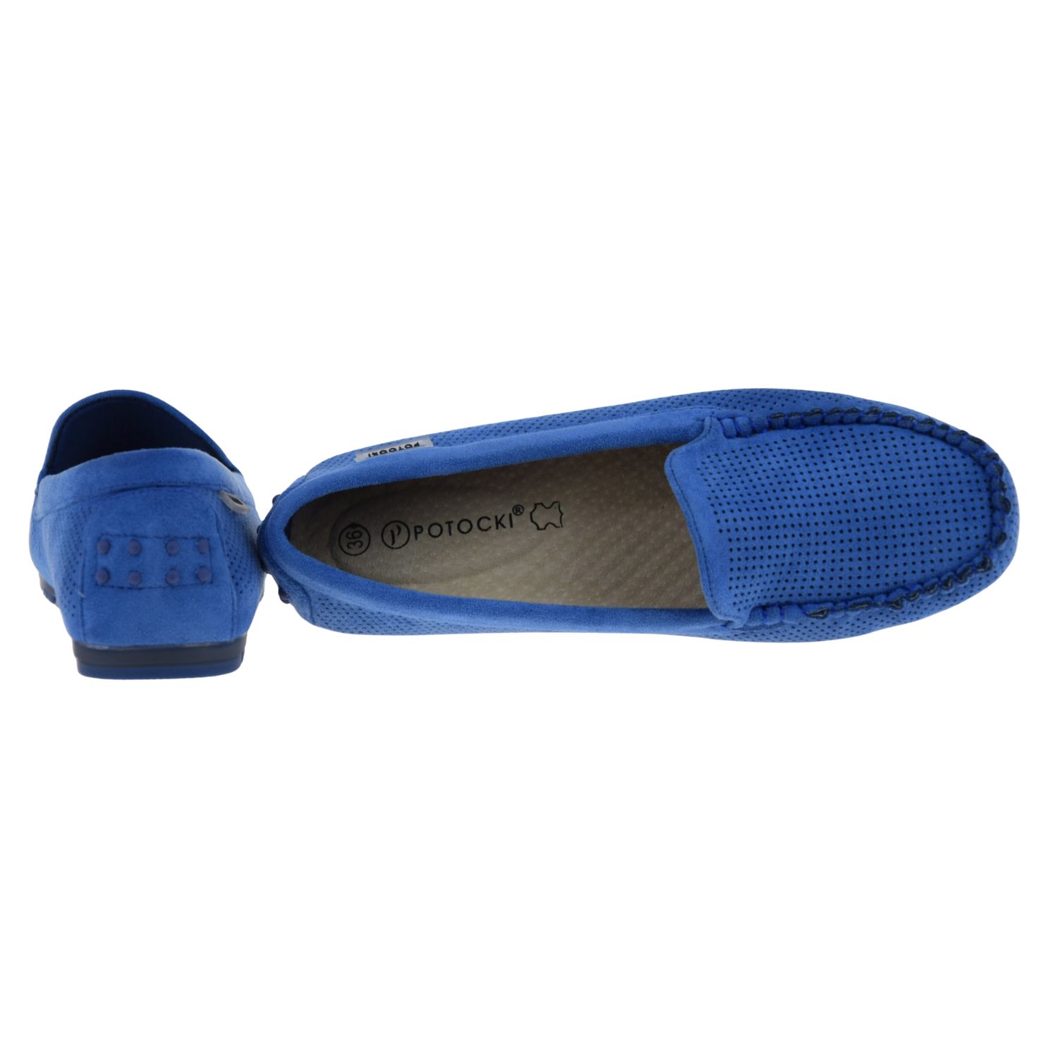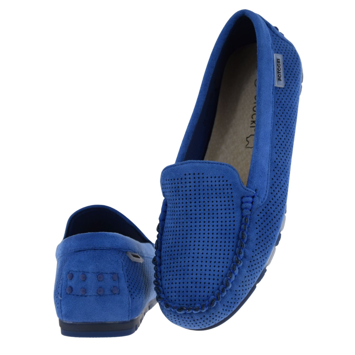 Mokasyny damskie Potocki 26-09301BL – niebieskie mokasyny damskie wsuwane, ażurowe, skórzana wkładka, lekkie i wygodne