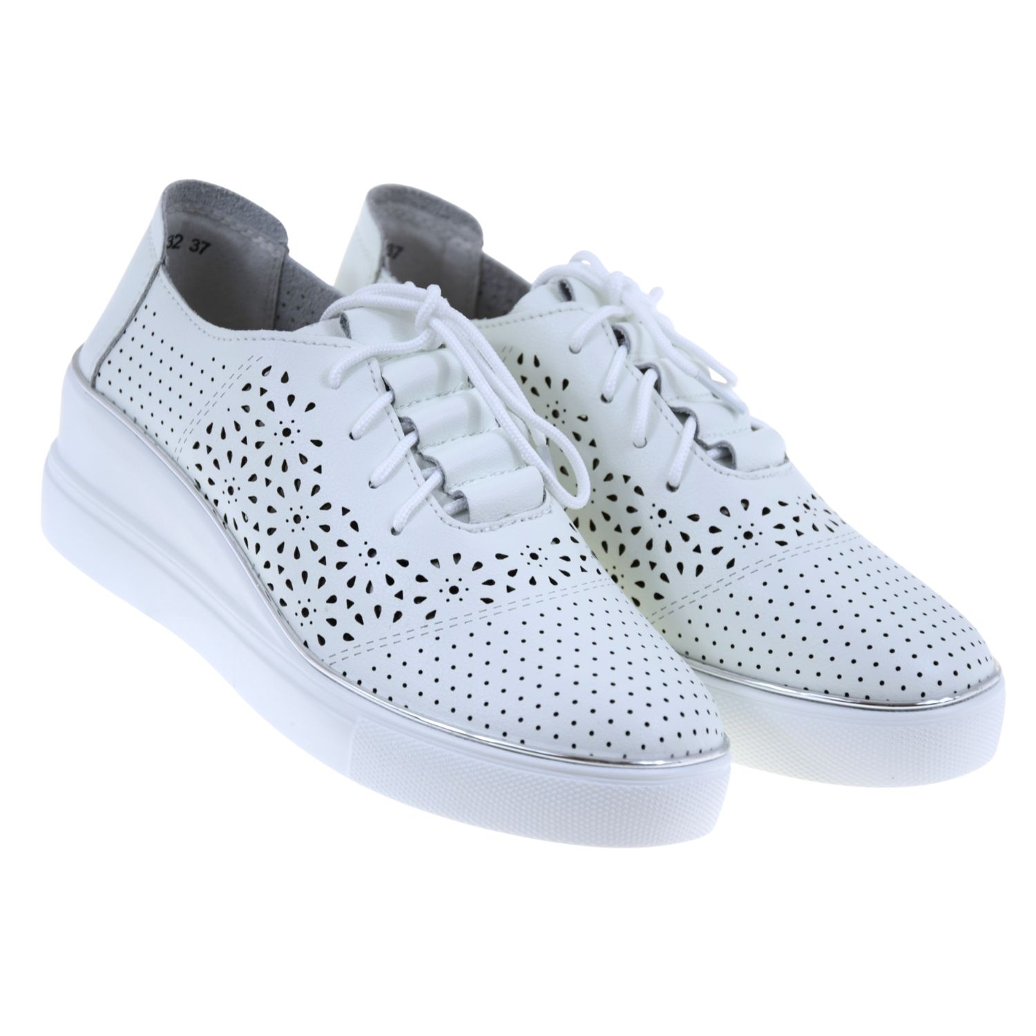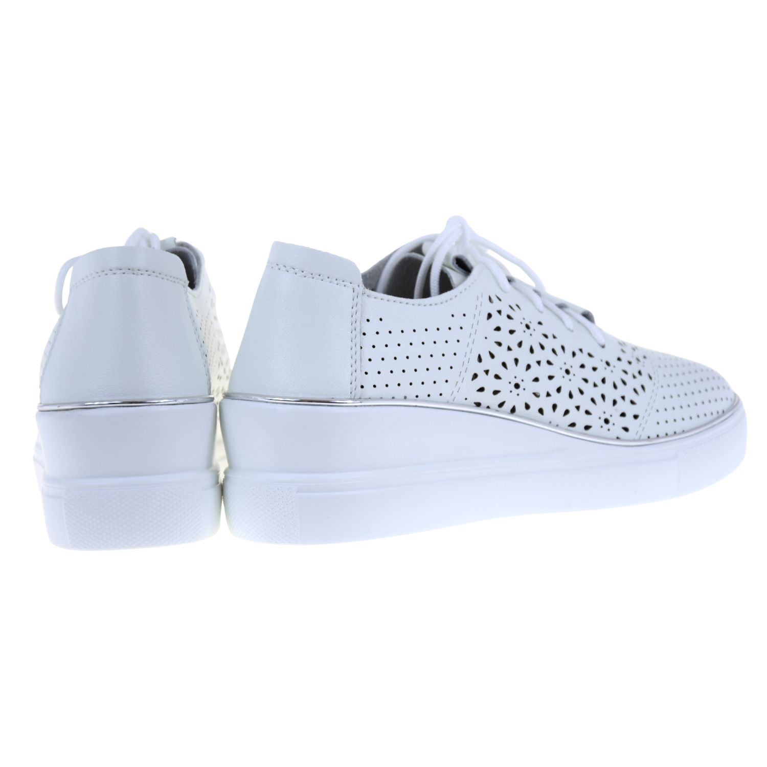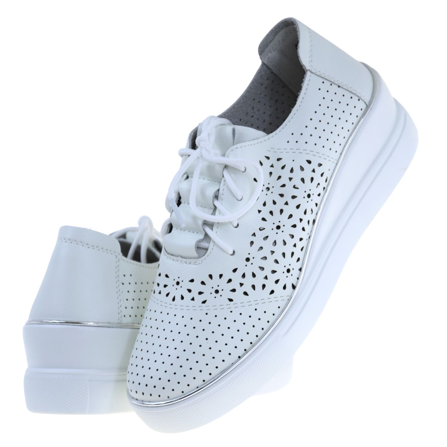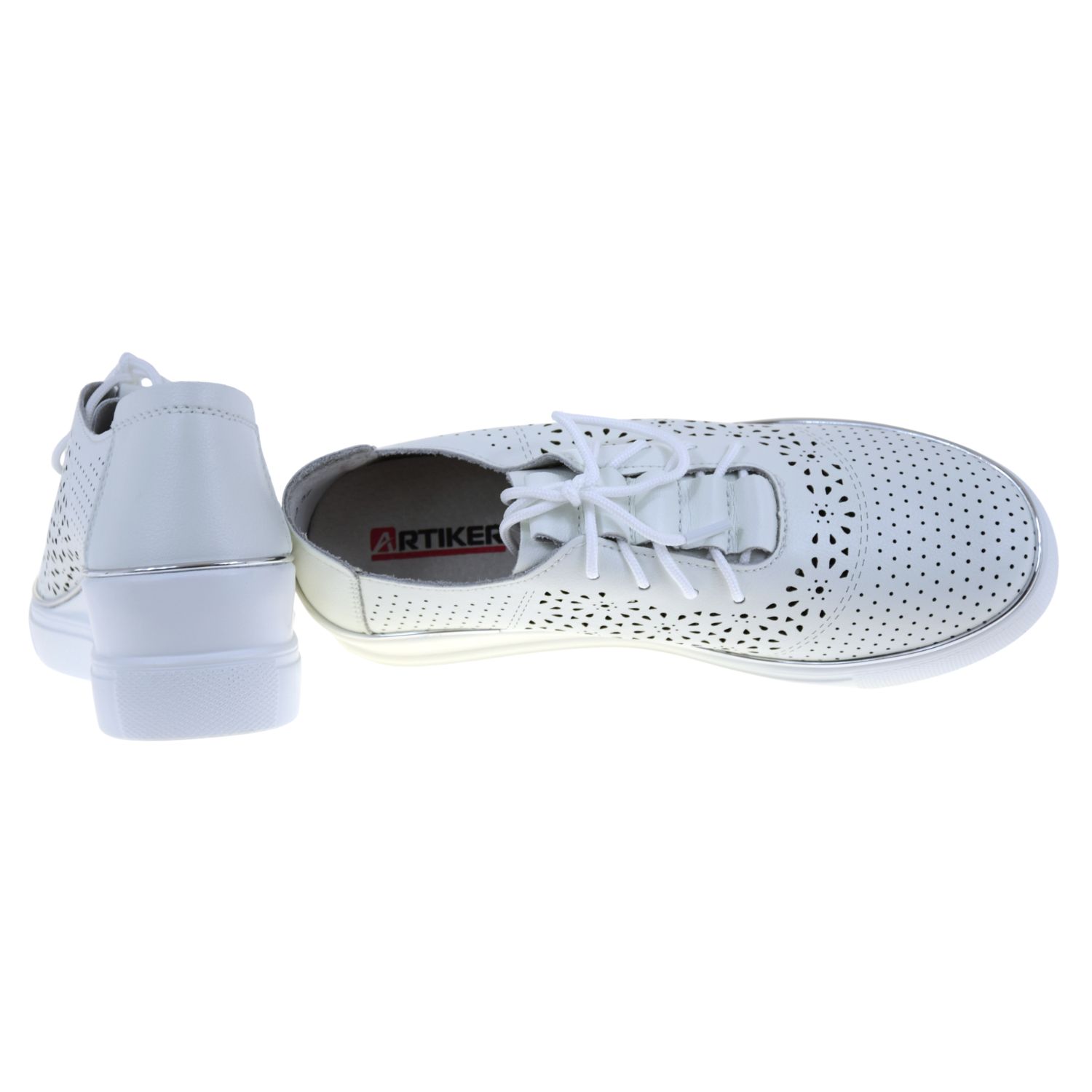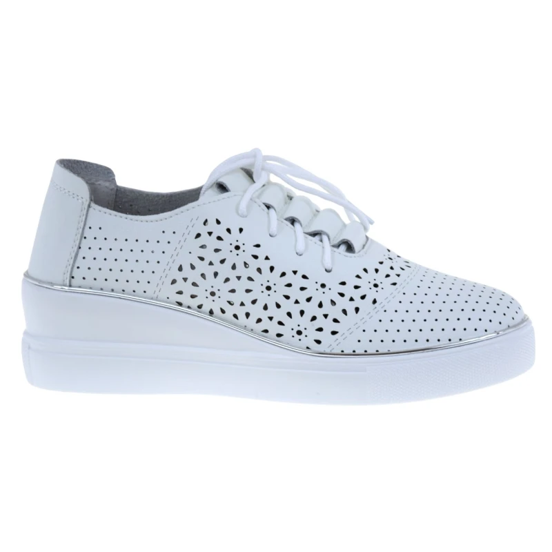 Półbuty damskie białe skórzane ARTIKER 48C1532 – ażurowe półbuty na koturnie
