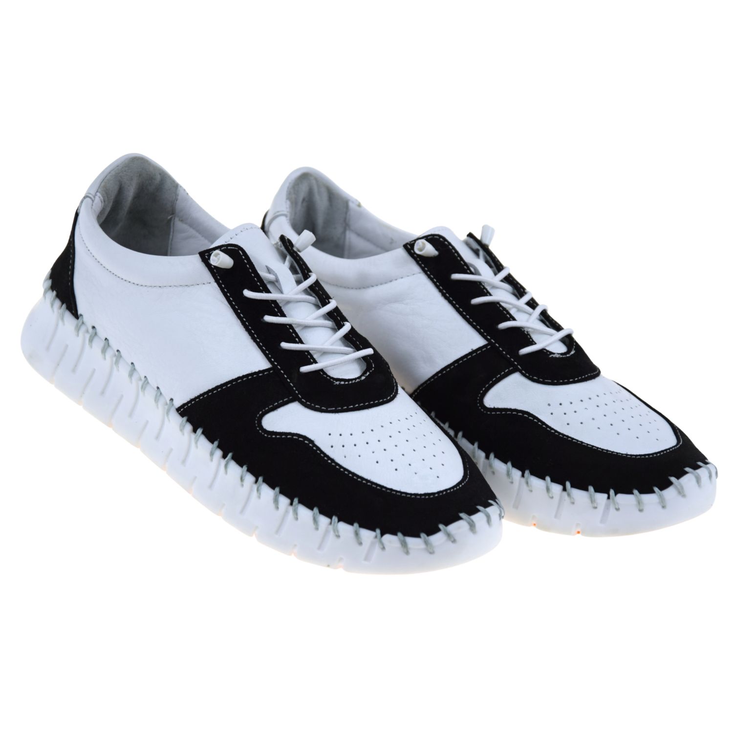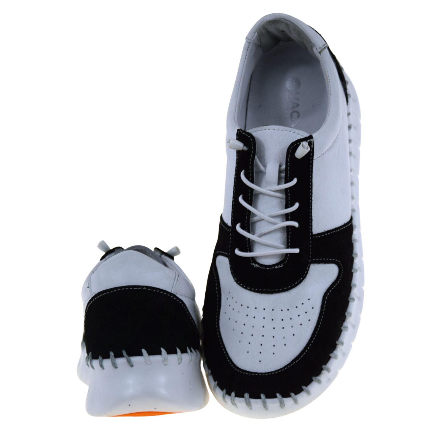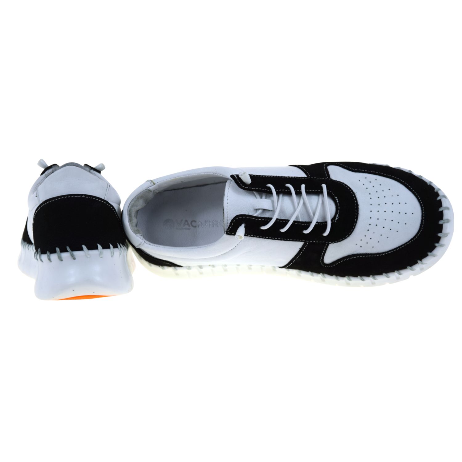 Półbuty damskie skórzane biało-czarne VACARRO NY.2140 – lekkie, wygodne i eleganckie półbuty na platformie