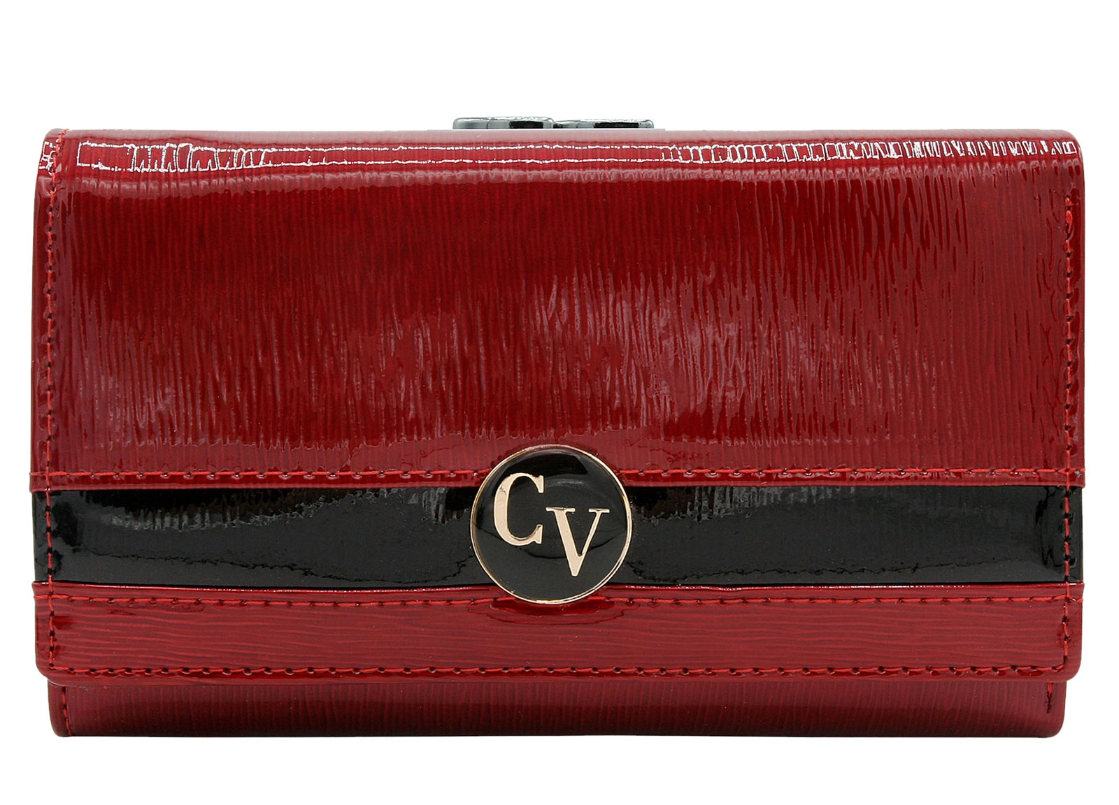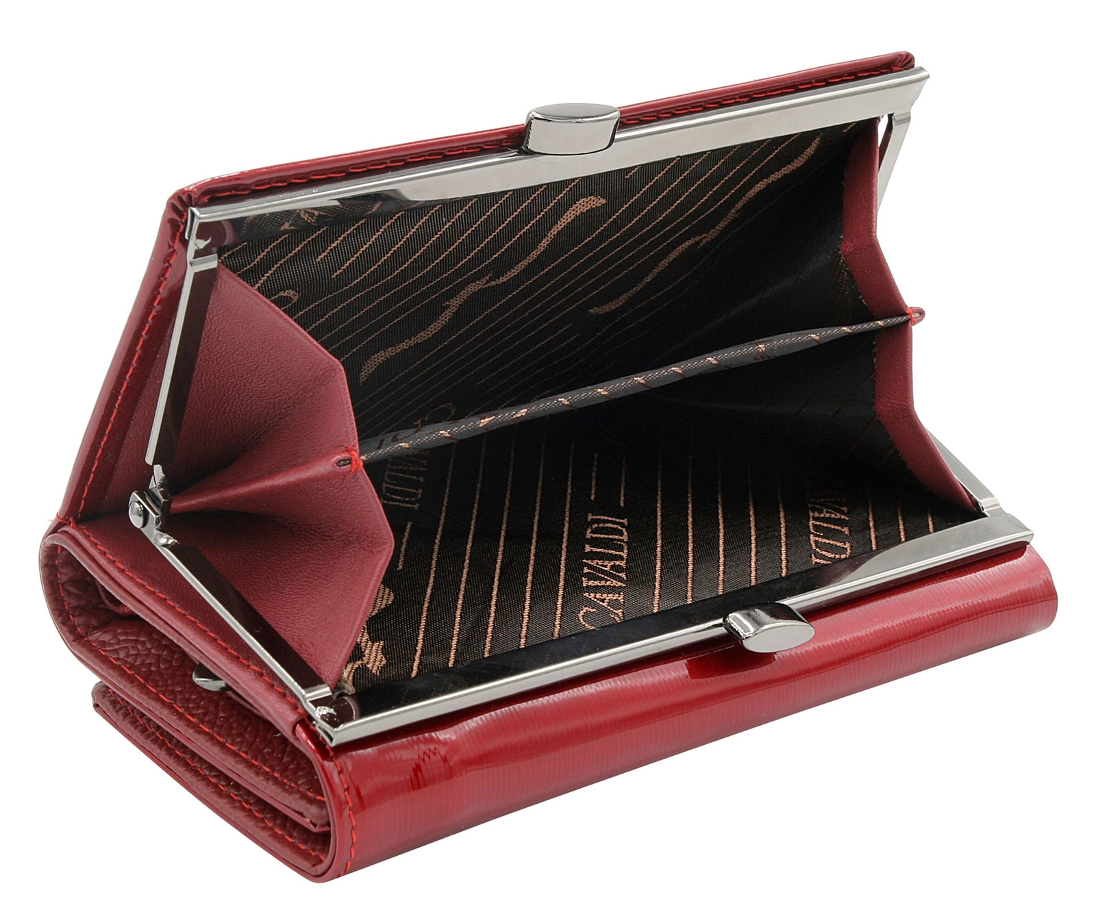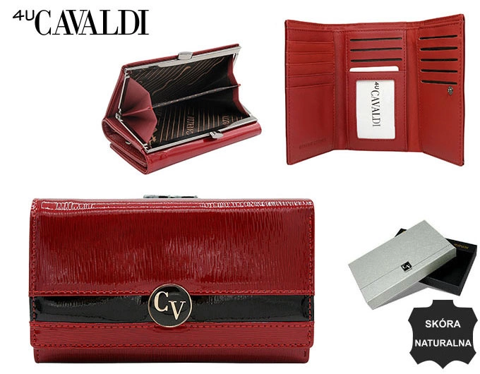Portfel damski skórzany czerwony lakierowany 4U Cavaldi H23-2-SH Red – portmonetka na bigiel i zatrzask