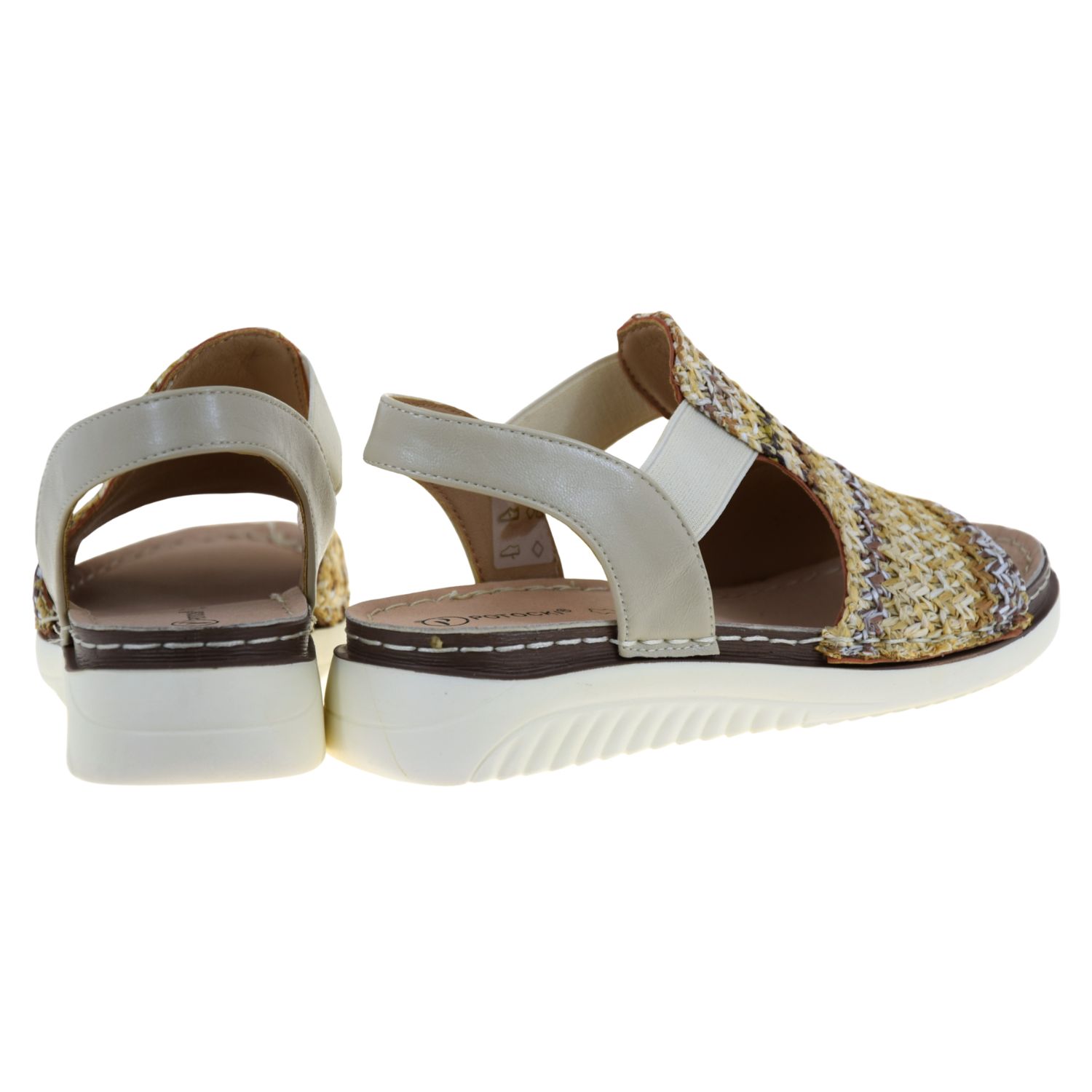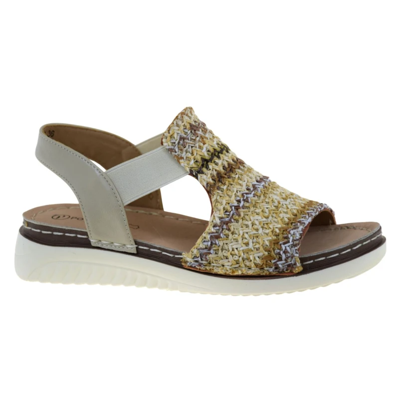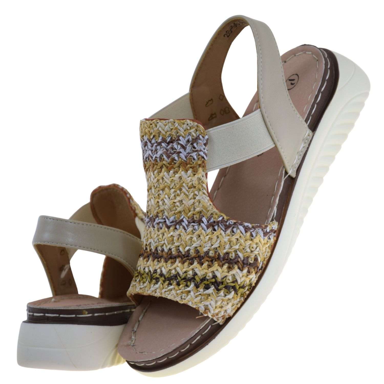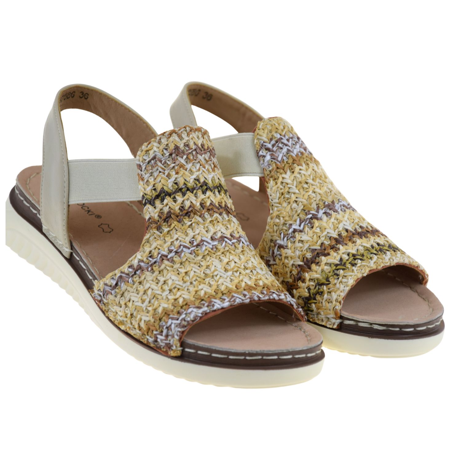 Praktyczne, wsuwane zapięcie oraz elastyczne gumy po bokach ułatwiają szybkie zakładanie i zdejmowanie butów, a jednocześnie pomagają utrzymać stopę we właściwej pozycji. Dzięki temu są to komfortowe sandały damskie wsuwane, które dobrze trzymają się nogi i zapewniają stabilność w ruchu. Subtelna kolorystyka beżu, słomki i delikatnych brązów sprawia, że model harmonijnie komponuje się z lnianą sukienką, jeansami, spódnicą czy eleganckimi spodniami.