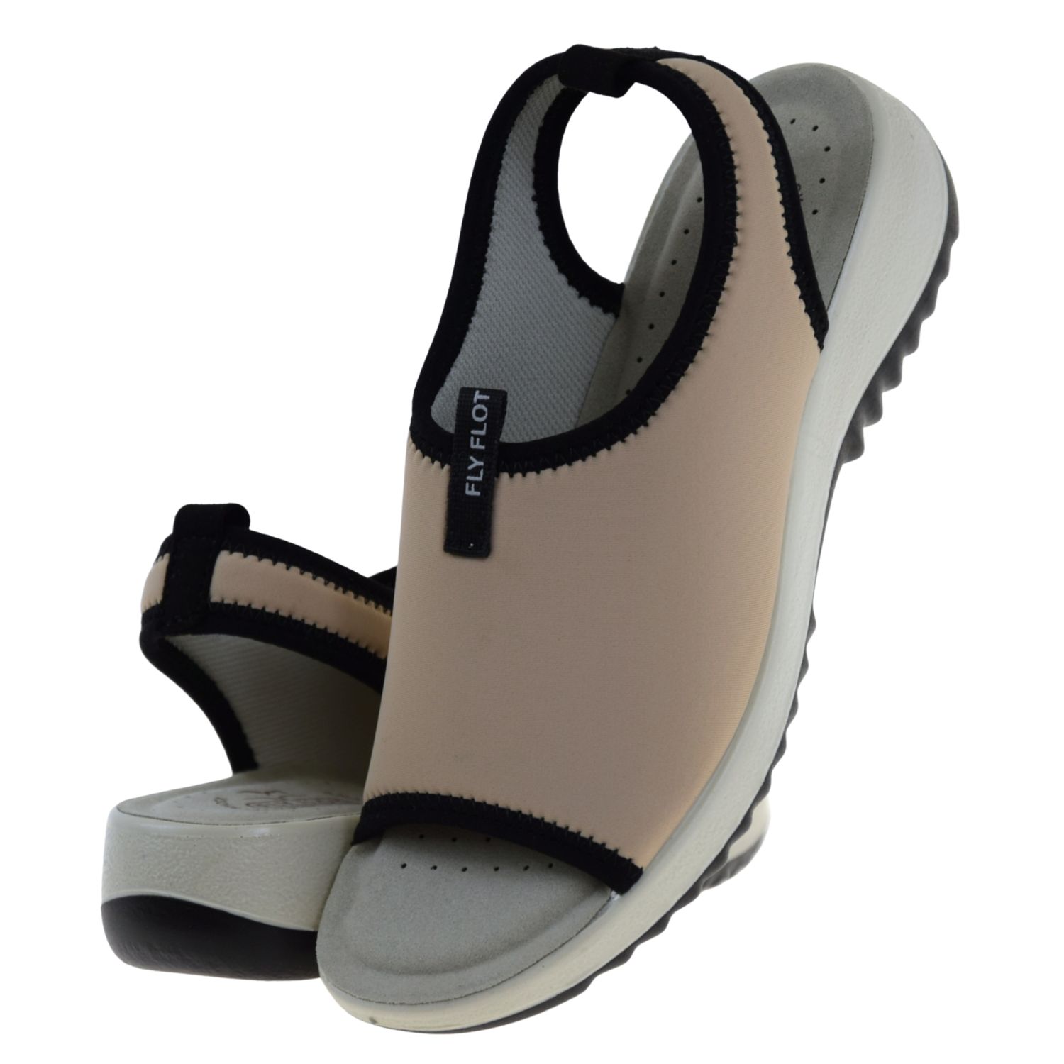 Sandały damskie na haluksy i wrażliwe stopy FLY FLOT 57 H87 LA – beżowe sandały z elastycznej lycry na koturnie