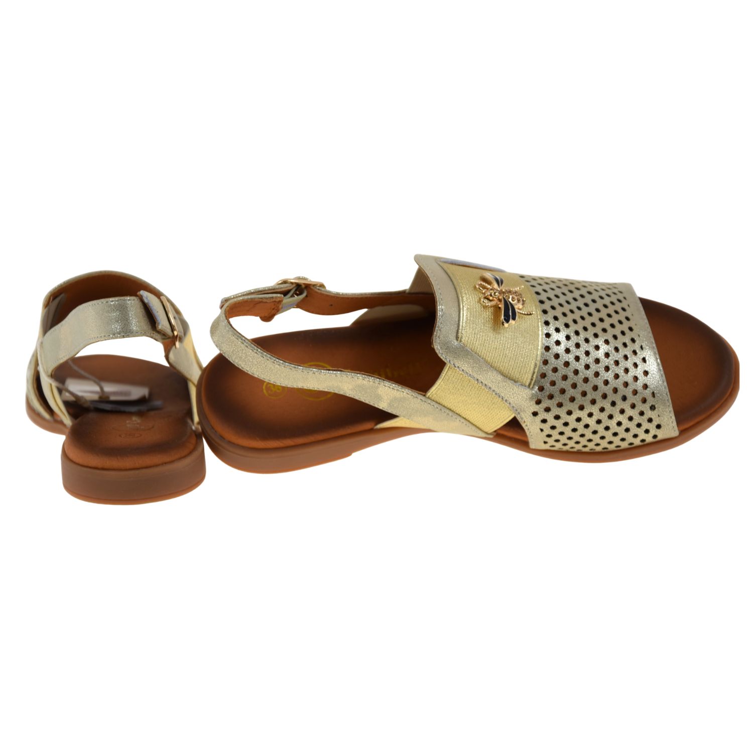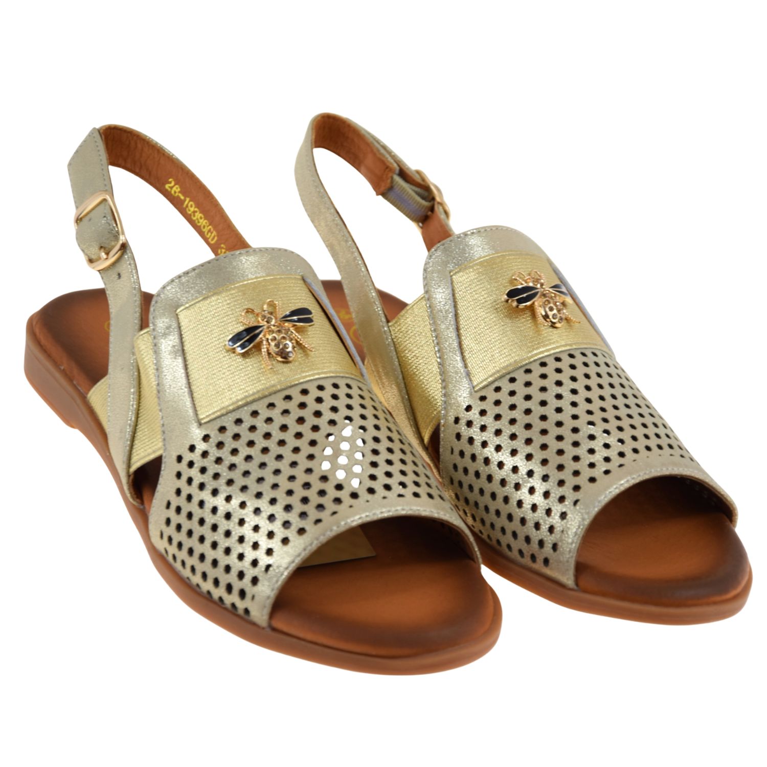 Złote sandały damskie skórzane CAMBELL 26-19396GD – eleganckie płaskie sandały na lato